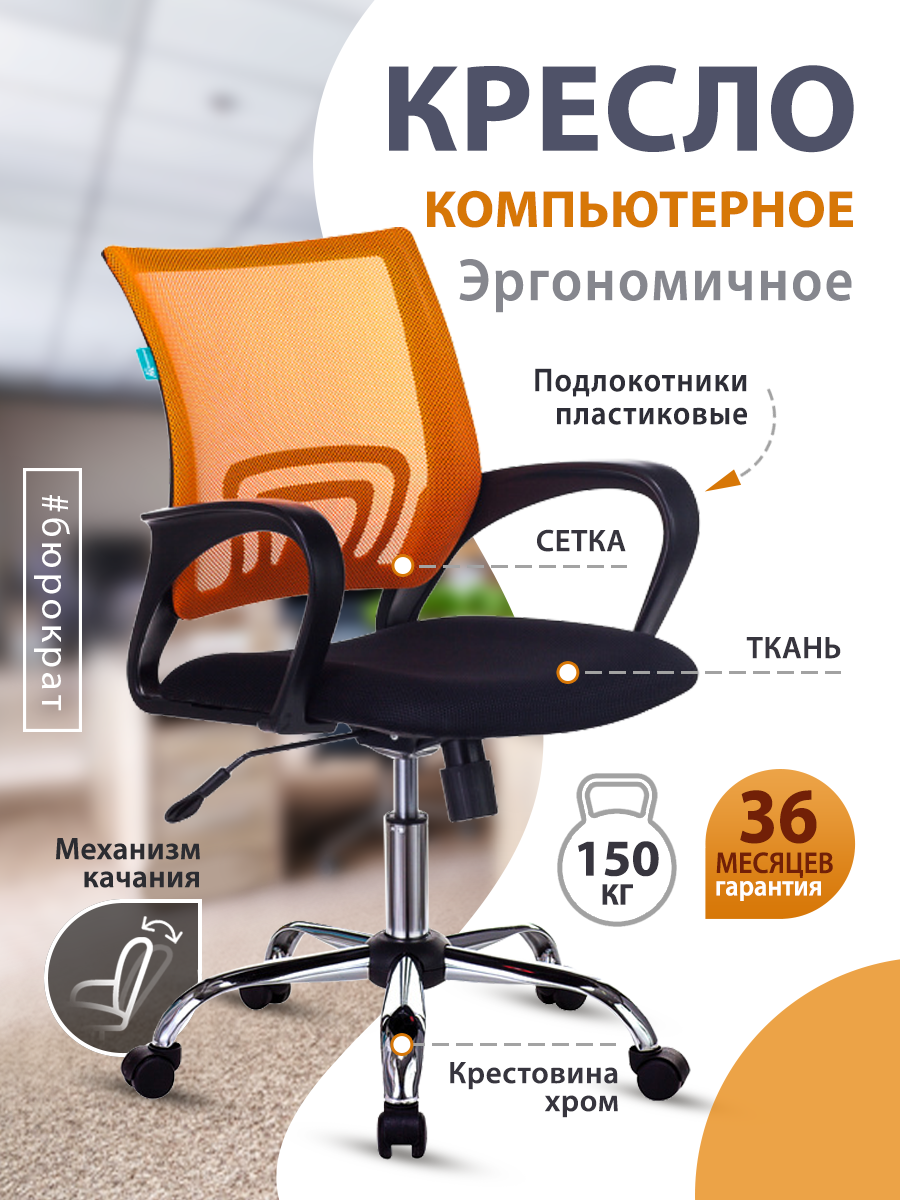 Кресло Бюрократ Ch-695n/sl/or/black спинка сетка оранжевый TW-38-3 сиденье черный TW-11 крестовина х .
