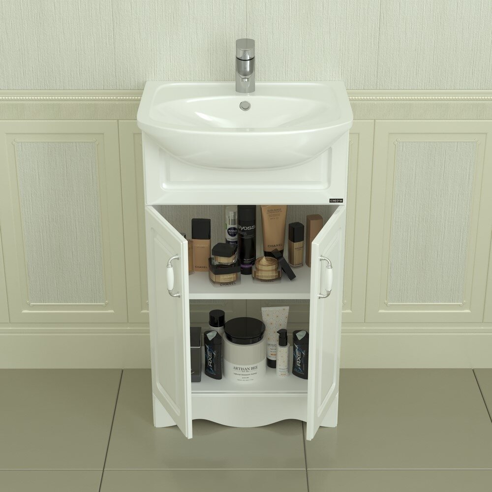 Тумба с раковиной для ванной Кристалл 50 белая.
