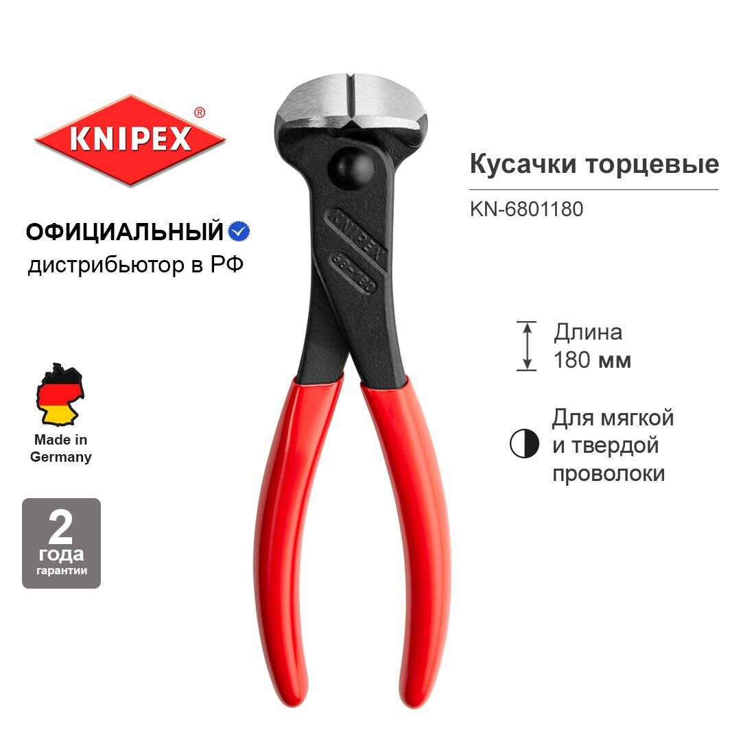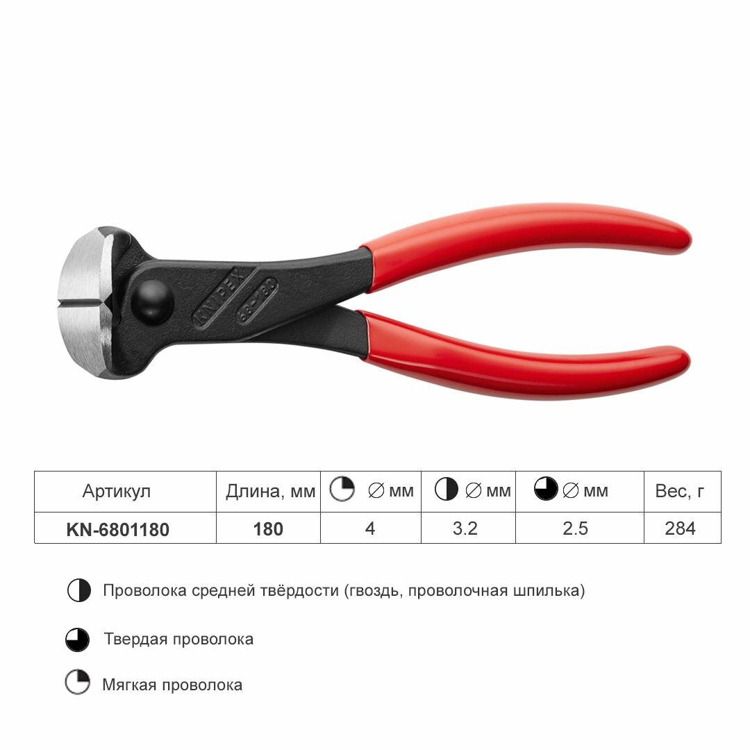 Кусачки KNIPEX торцевые, 180 мм, фосфатированные, обливные ручки KN-6801180 интересное: