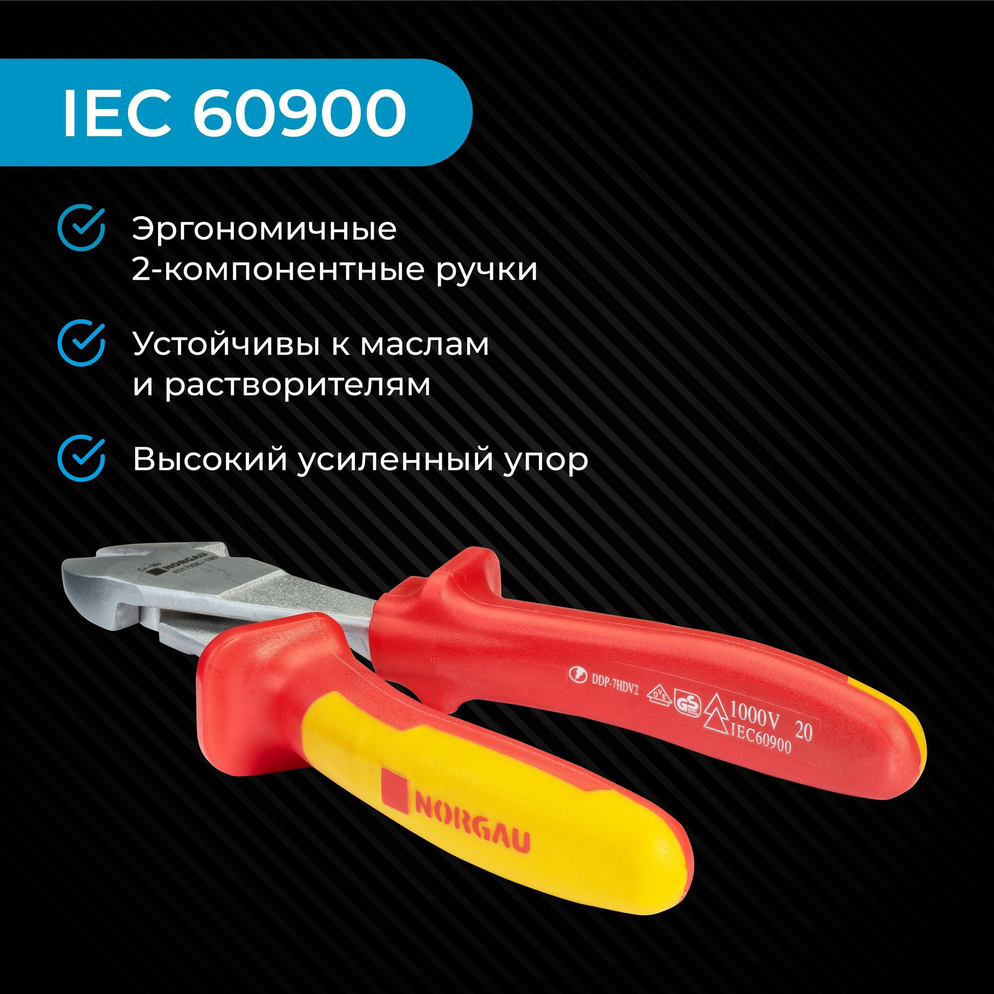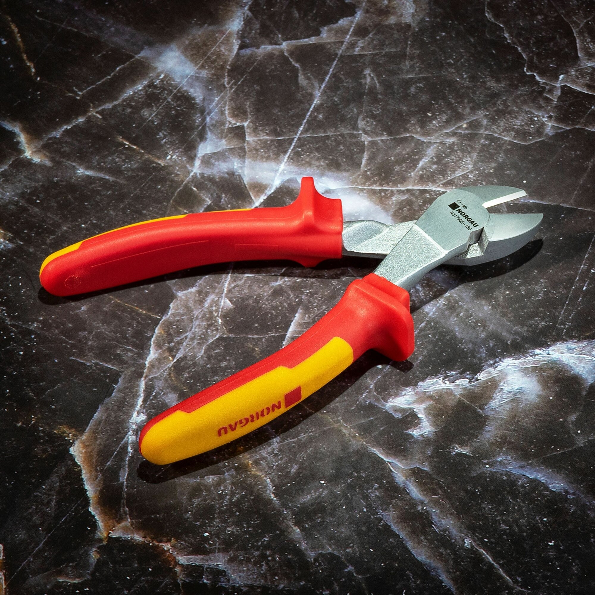 Бокорезы диэлектрические силовые NORGAU Industrial кусачки из CrMo стали с нескользящими двухкомпонентными рукоятками, 1000 V, 180 мм