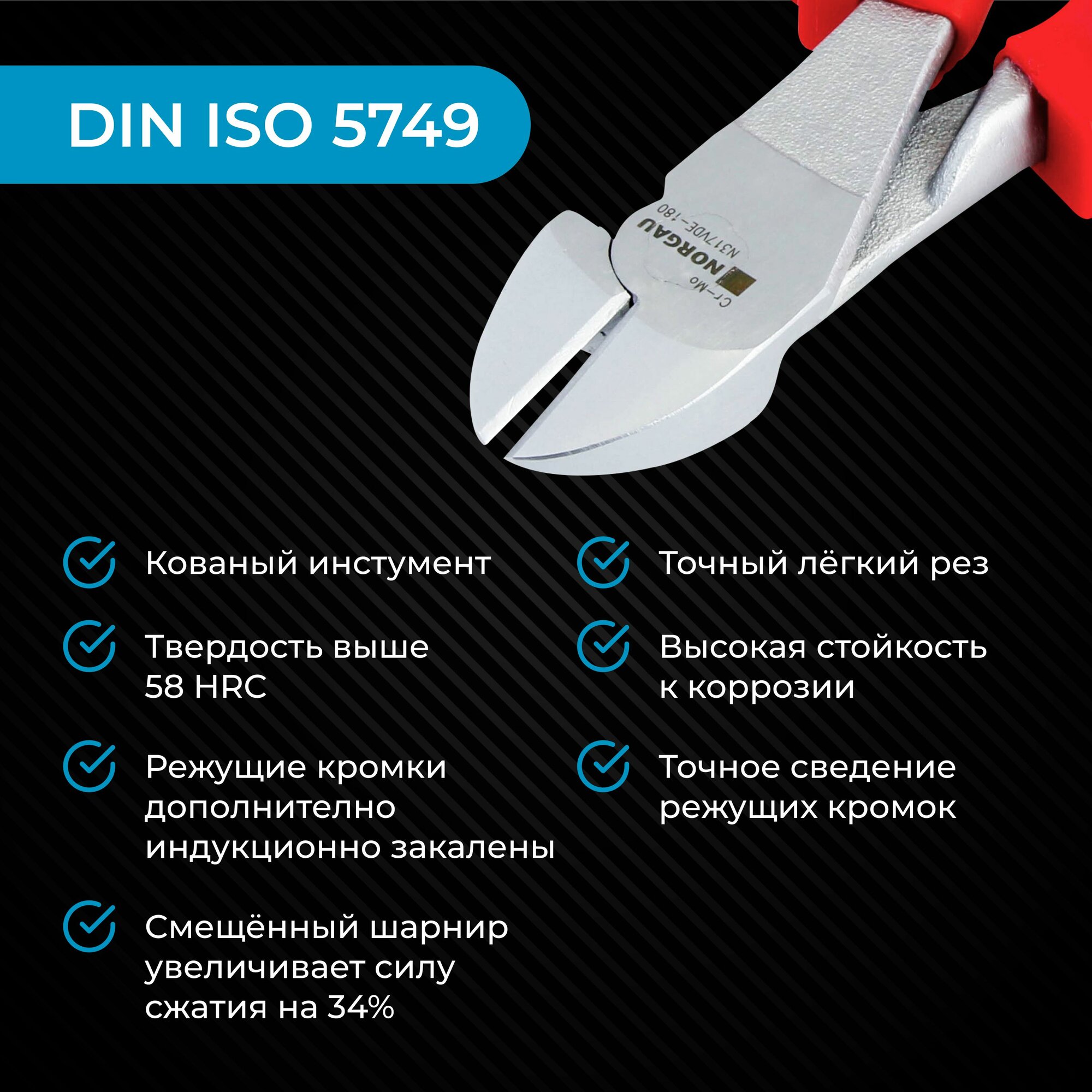 Силовые диэлектрические бокорезы NORGAU Industrial из инструментальной стали с VDE рукоятками, 1000 V, 175 мм