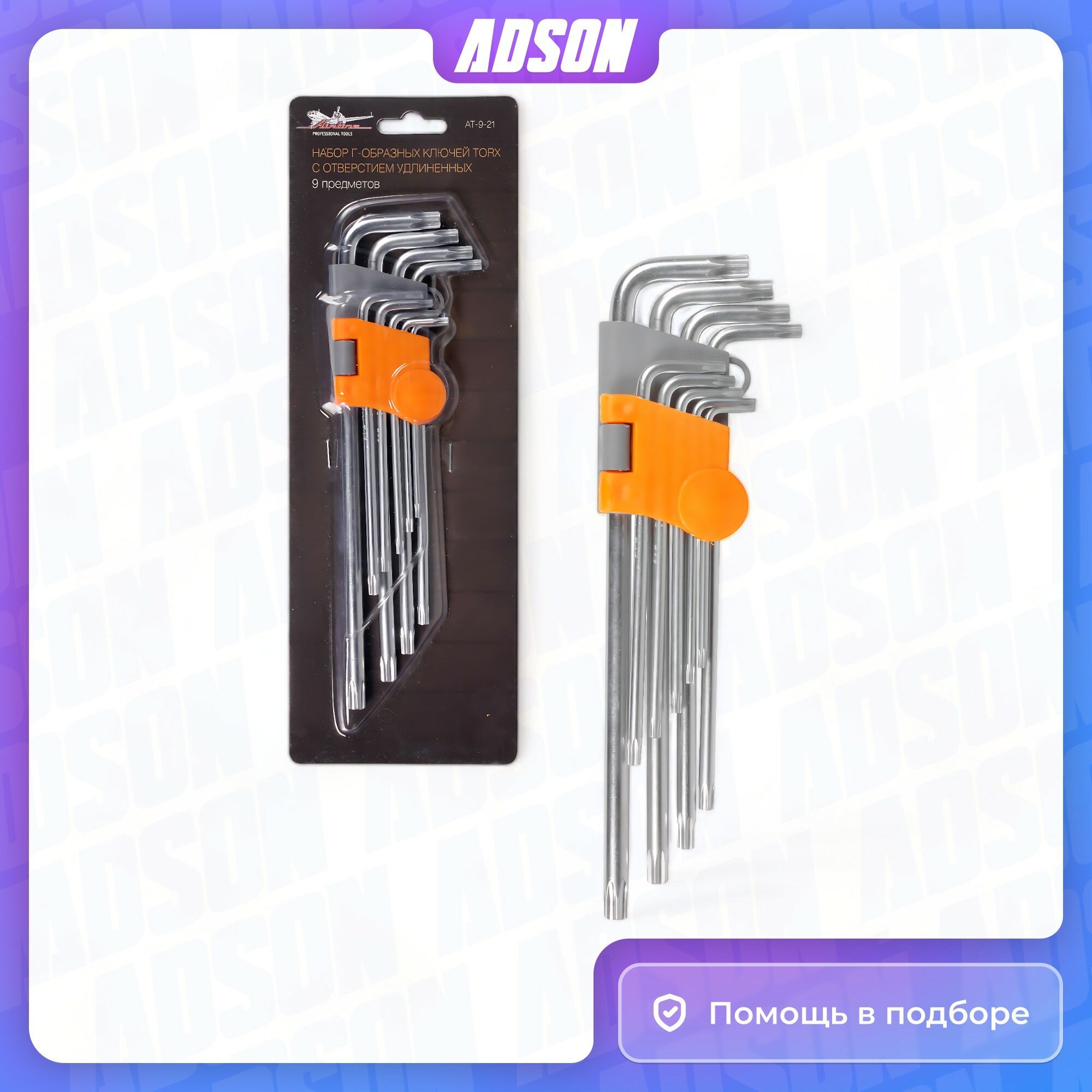 Набор Г-образных ключей TORX инбус с отв. удлинённых 9 предметов (Т10, Т15, Т20, Т25, Т27, Т30, Т40, Т45, Т50) пласт.подвес (AT-9-21)