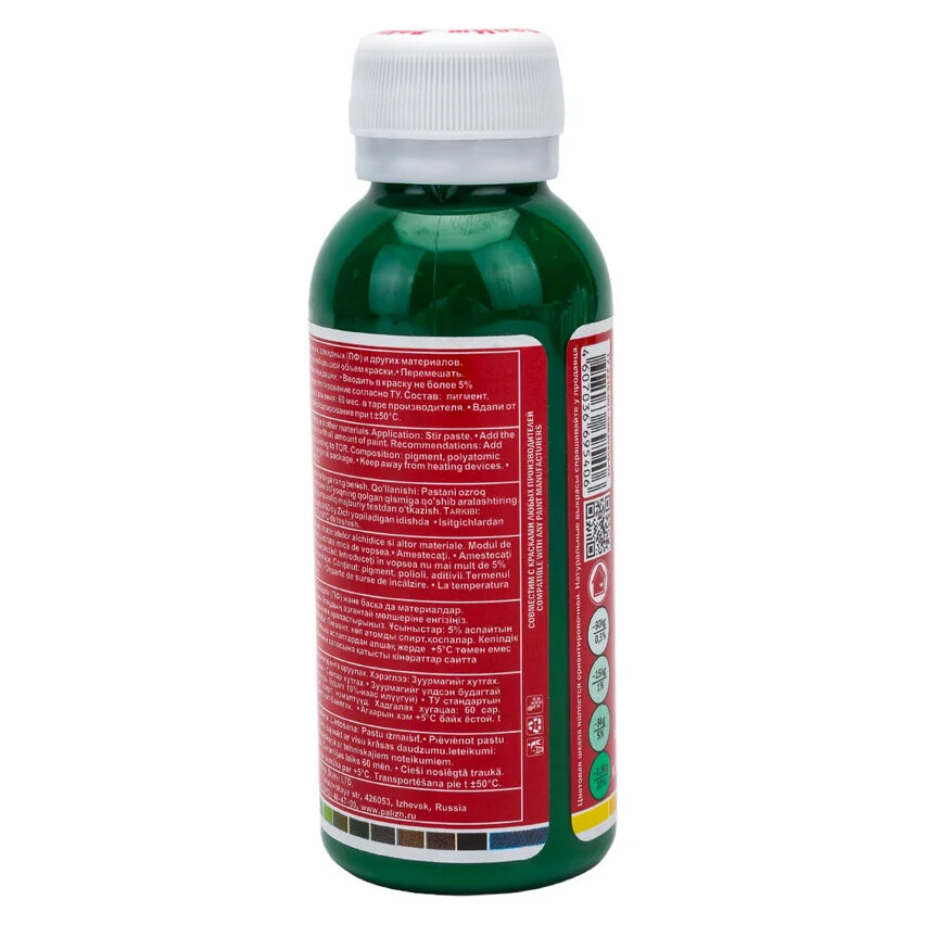 Паста колеровочная универсальная PALIZH, колер для краски, эмали, лака, изумрудный 100 мл
