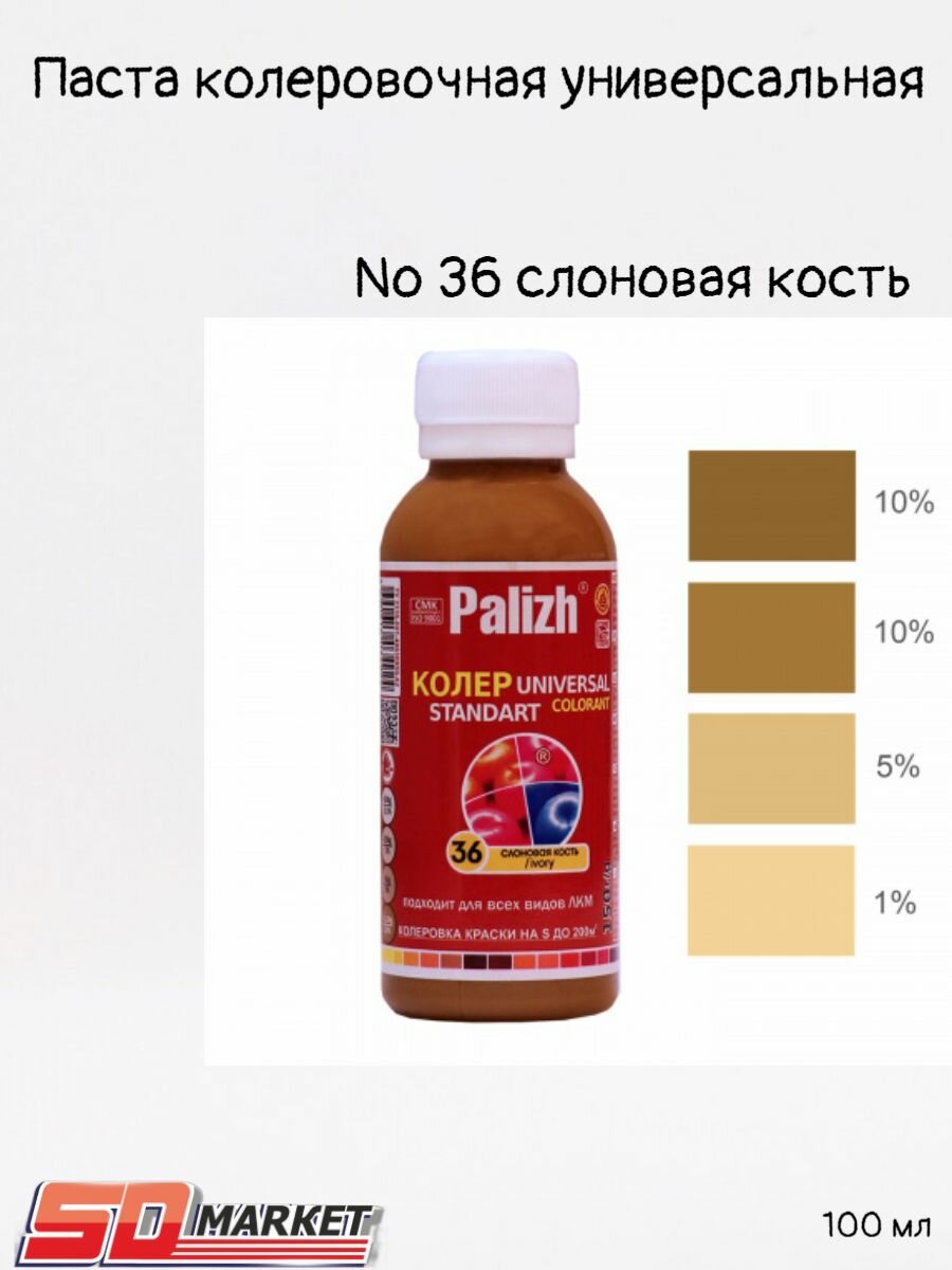 Ниже Вы можете прочитать отзывы на Колер для краски"Palizh STANDART" 0,1л №36 слоновая кость, ознакомится с подробными характеристиками, посмотреть интересные обзоры и фотографии на Колер для краски"Palizh STANDART" 0,1л №36 слоновая кость.