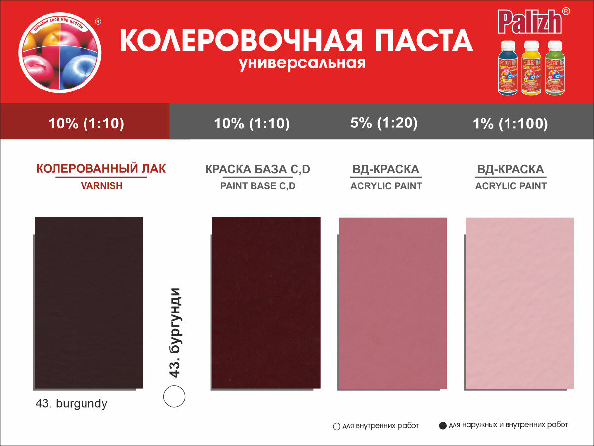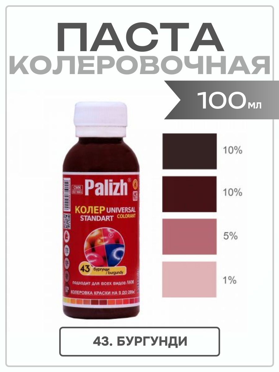 Колеровочная паста Palizh Universal Standart ST-43 бургунди 0.1 л