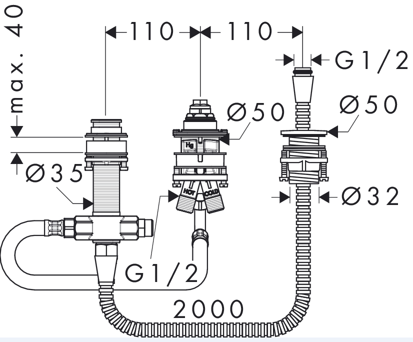 HG Logis смеситель для ванны на 3 отверстия 71313000