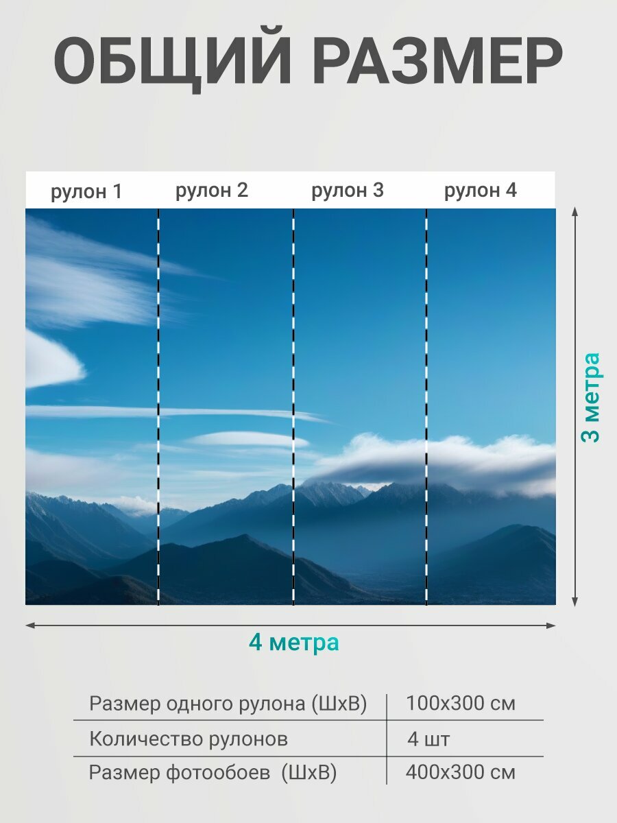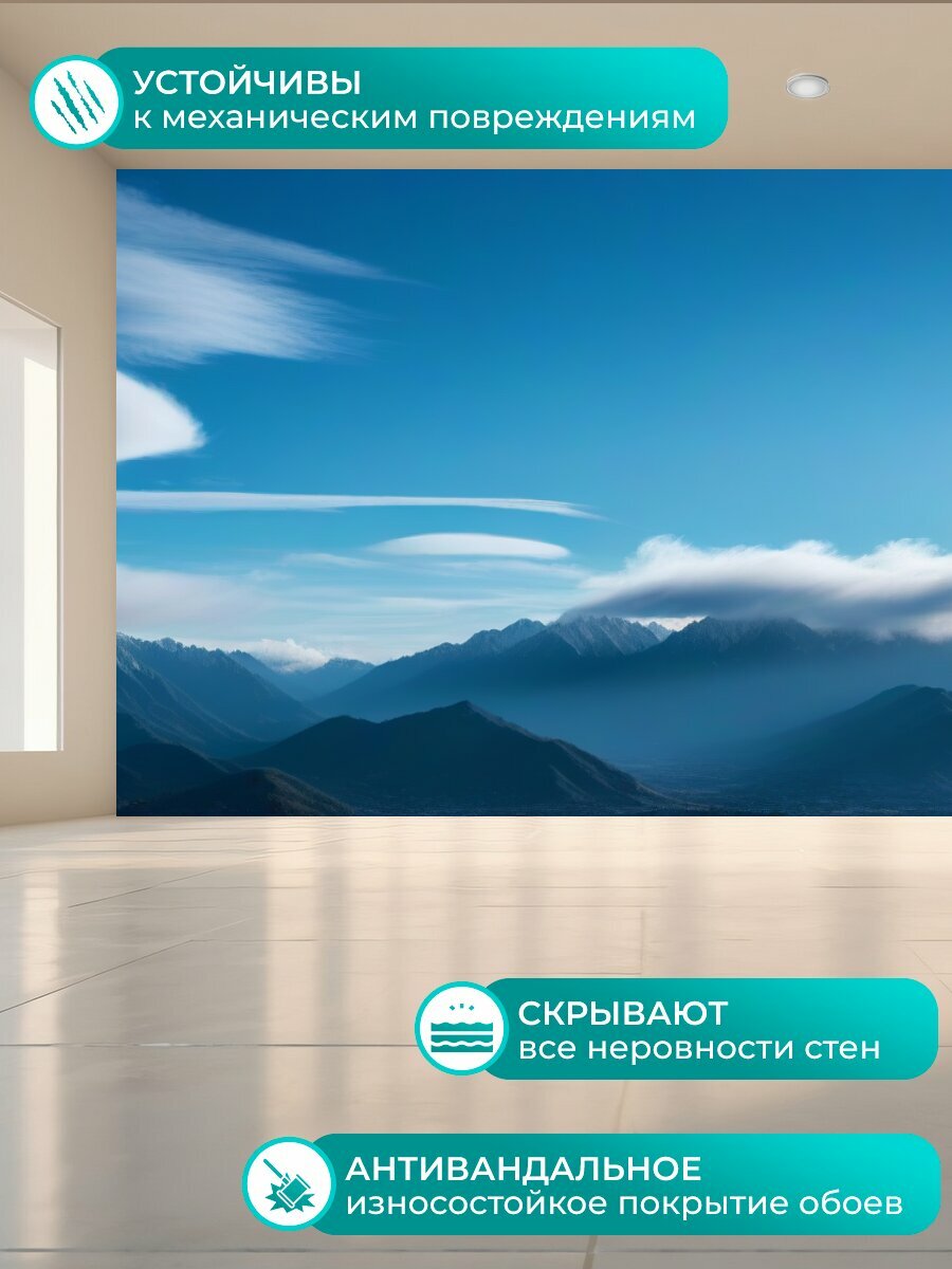 Фотообои моющиеся ударопрочные "Утренние облака над далекими горами" 400x300 см. флизелиновые на стену интересное: