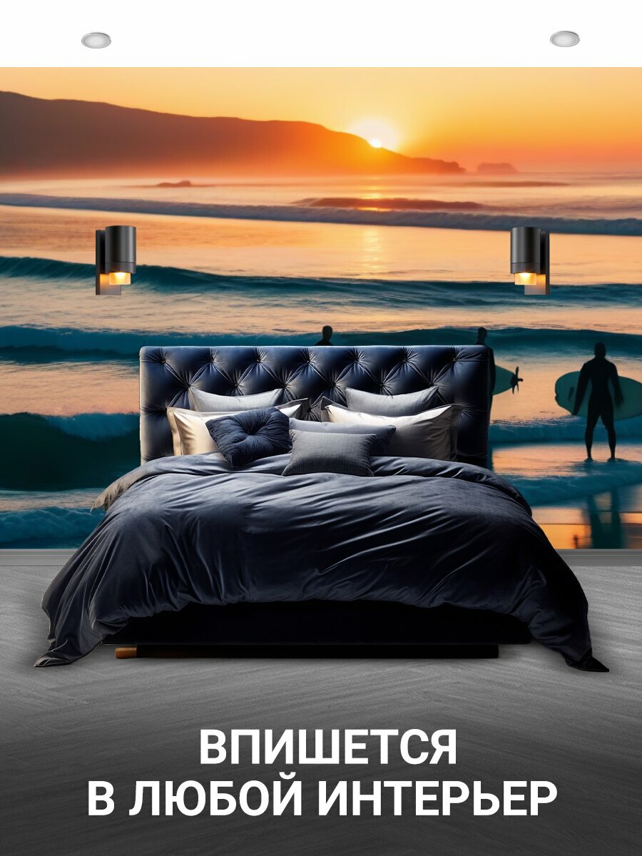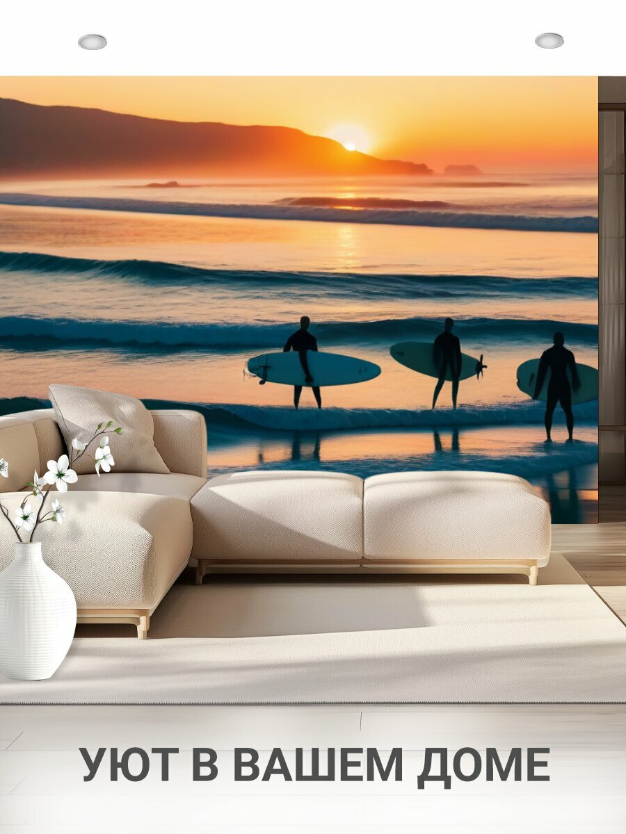 Фотообои моющиеся ударопрочные "Групповая фотография с серфингистами на фоне заката" 400x300 см. флизелиновые на стену интересное: