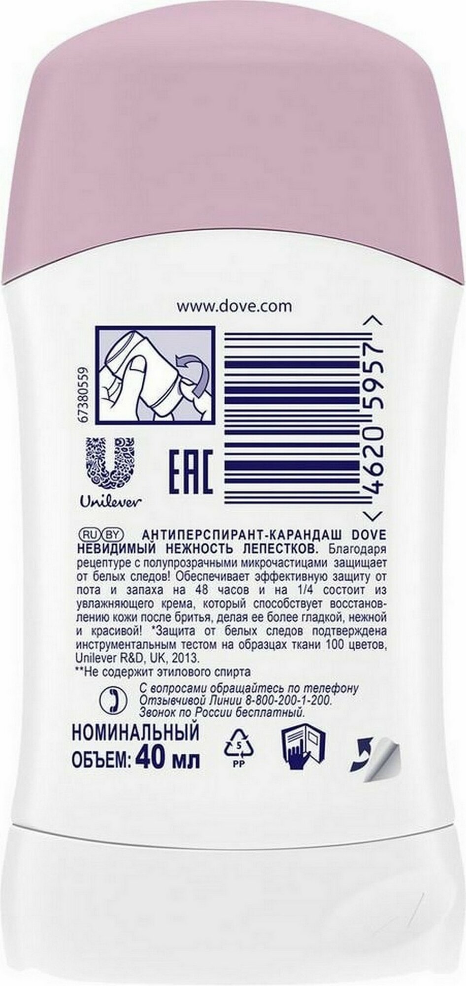 Купить Dove Дезодорант-антиперспирант стик женский Невидимый Нежность лепестков 40 мл - 1 шт