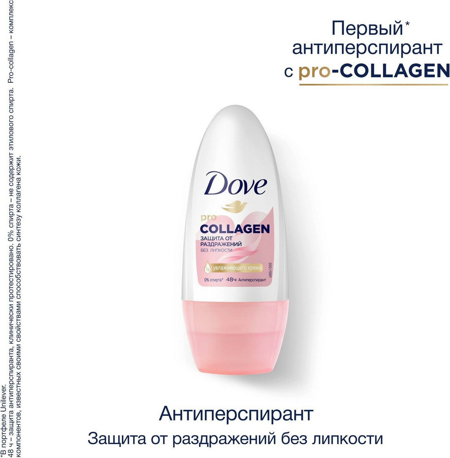 Купить Dove Дезодорант-антиперспирант ролик женский защита от раздражений без липкости с Pro-collagen комплекс 50 мл - 6 шт