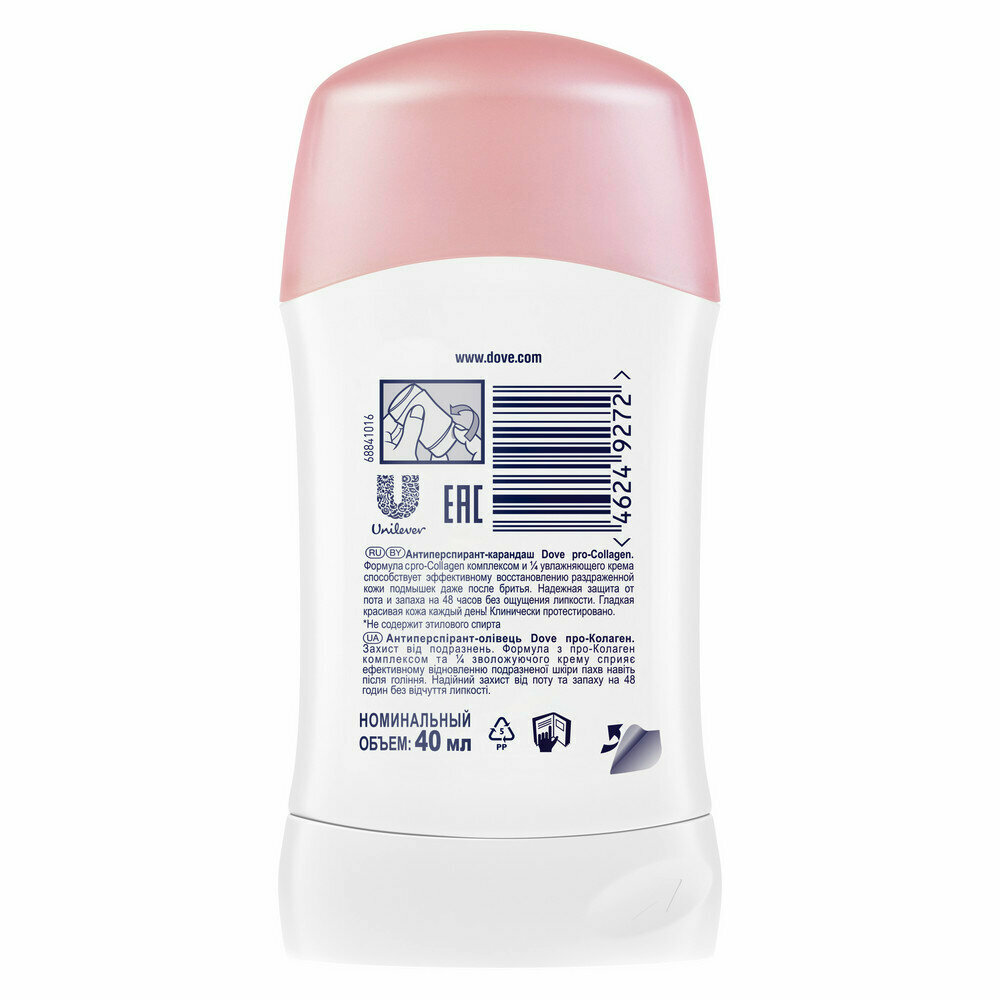 Купить Дезодорант-антиперспирант стик Dove, Pro-Collagen, 40 мл