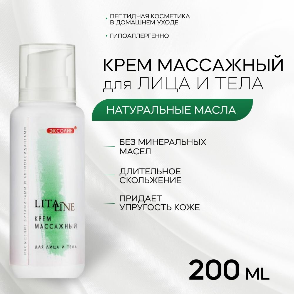 Купить LITALINE Массажный Крем с Пептидами, Натуральными маслами, лицо и тело, длительное скольжение, упругость кожи, 200 мл