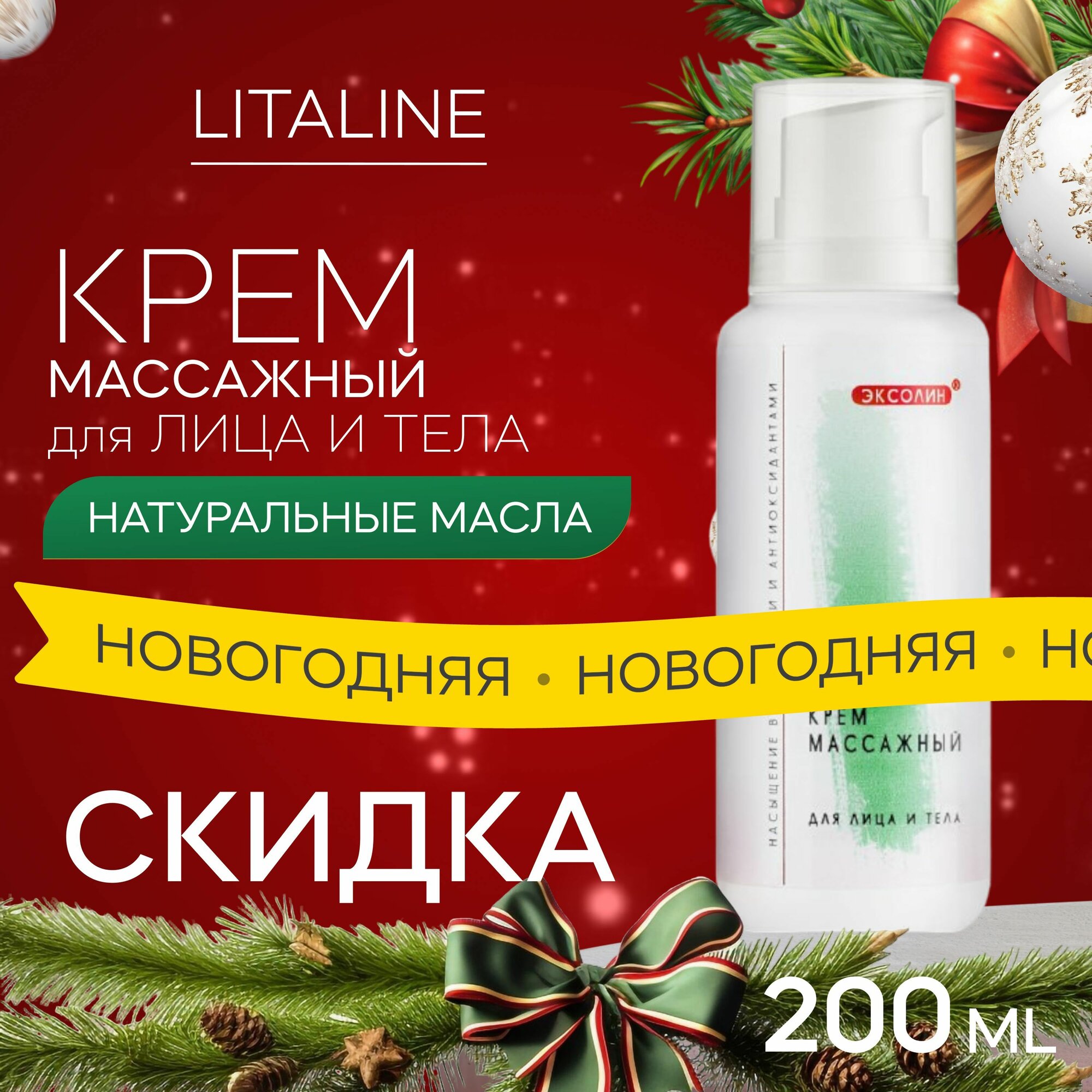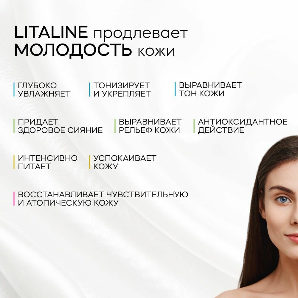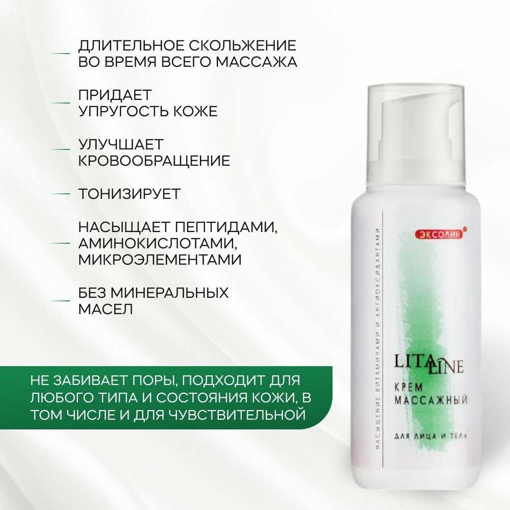 LITALINE Массажный Крем с Пептидами, Натуральными маслами, лицо и тело, длительное скольжение, упругость кожи, 200 мл интересное: