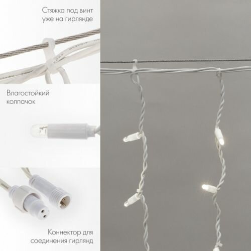 Гирлянда светодиодная Neon-Night Айсикл (бахрома) 5,6 х 0,9 м, с эффектом мерцания, белый провод каучук, 230 В, диоды белые, 240 LED