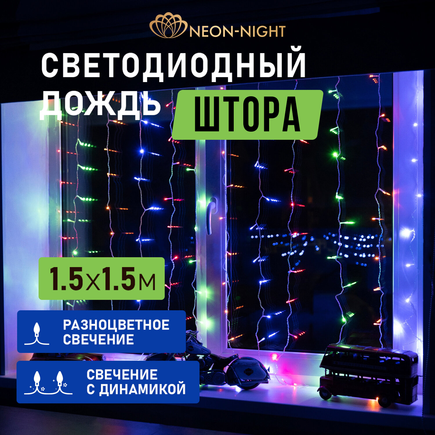 Купить Гирлянда новогодняя светодиодная Neon-Night Дождь-штора 144 LED, 1.5х1.5 м с контроллером, мультиколор свечение