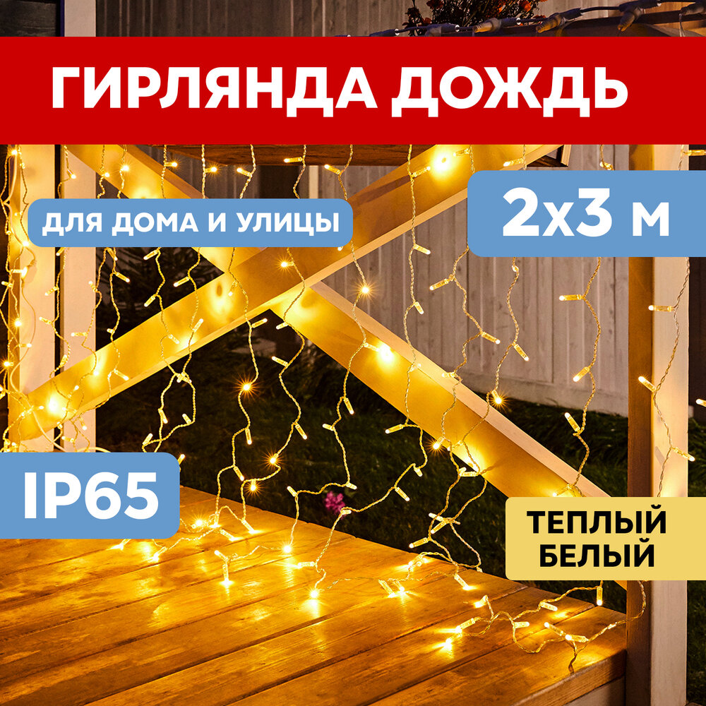 СохранитьСветодиодная гирлянда Neon-night "Дождь" 2х3 м, 448 тепло-белых светодиодов, постоянное свечение, прозрачный провод интересное: