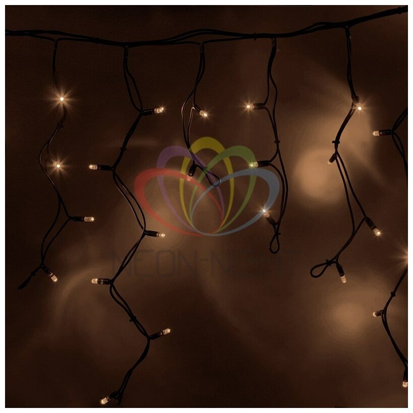 Светодиодная гирлянда "Бахрома" Neon-night 4.0х0.6 м, 128 тепло-белых светодиодов, черный каучуковый провод, постоянное свечение