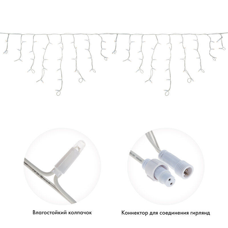 Гирлянда занавес бахрома LED NEON-NIGHT Айсикл уличная постоянное свечение теплый белый 4*0,6 м 255-226