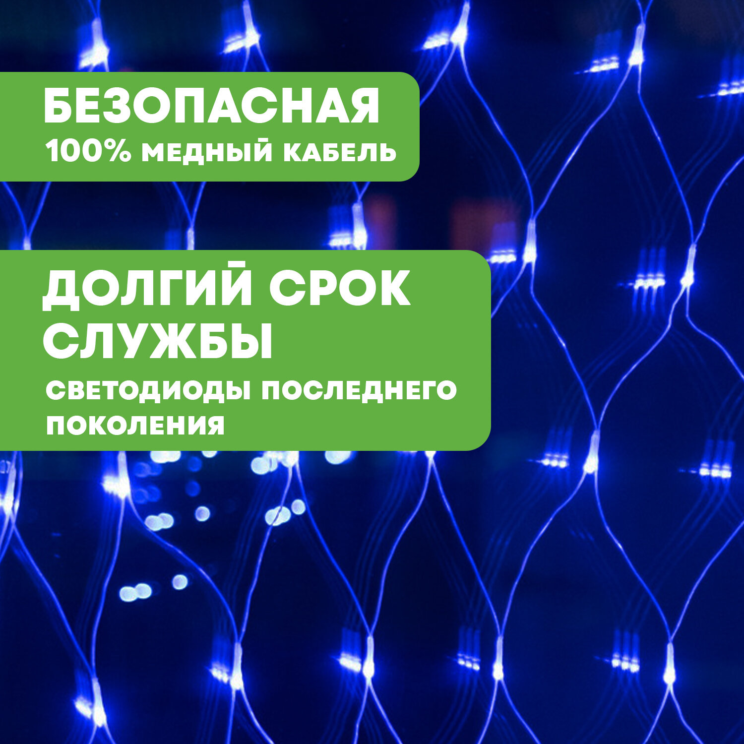 Гирлянда "Сеть" 1,5х1,5м, прозрачный ПВХ, 150 LED Синие