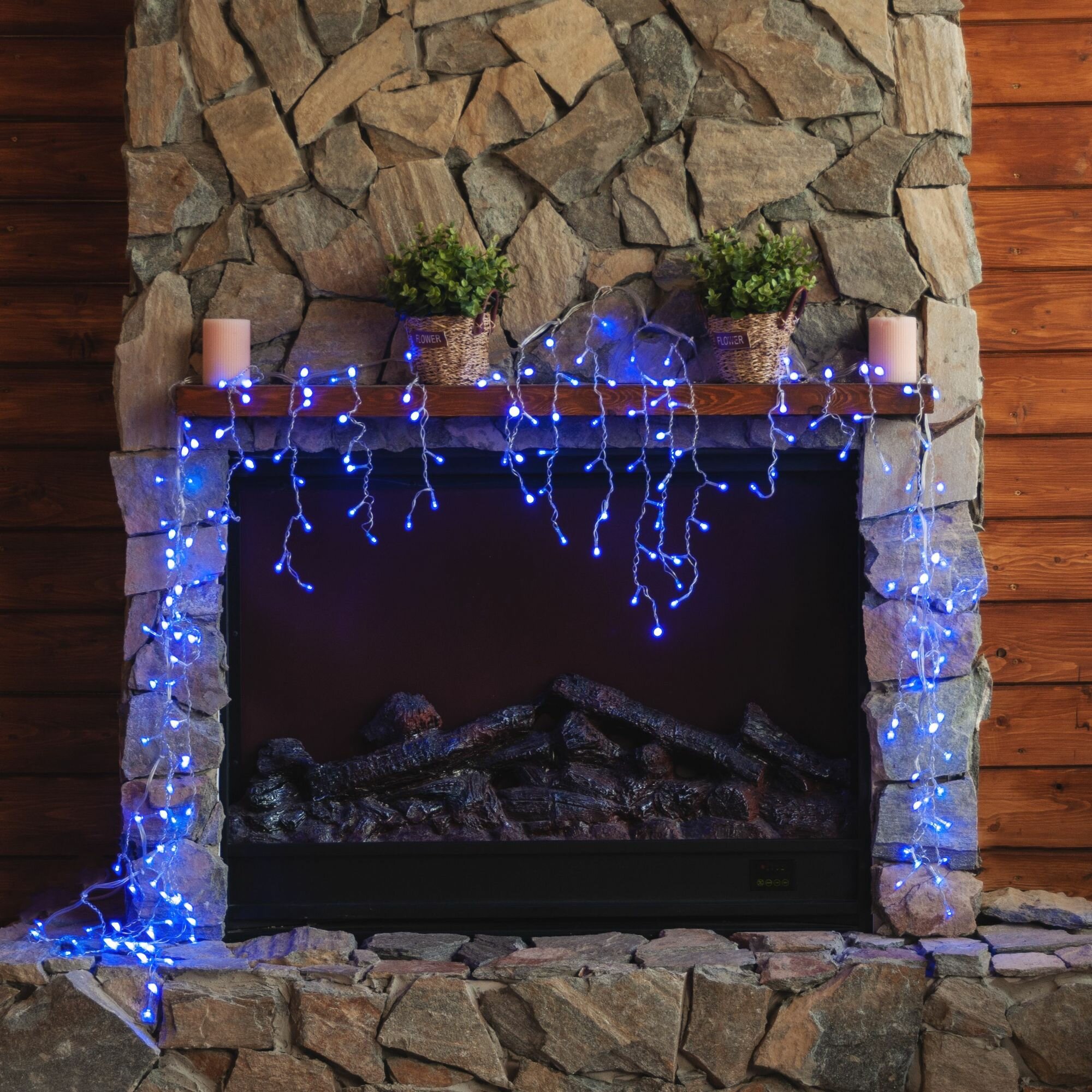 Гирлянда 200LED IP20 3м Бахрома синий, провод прозрачный
