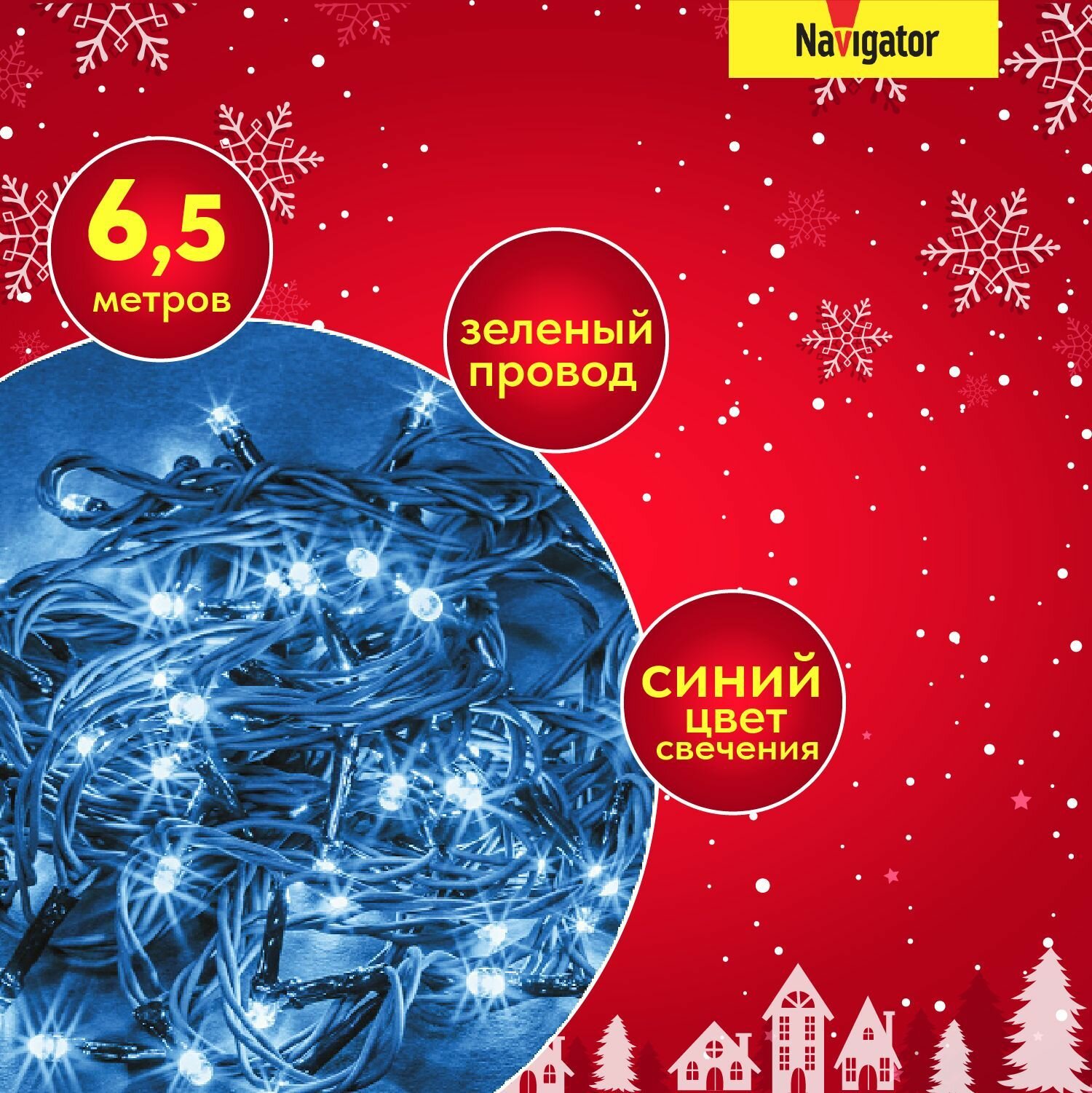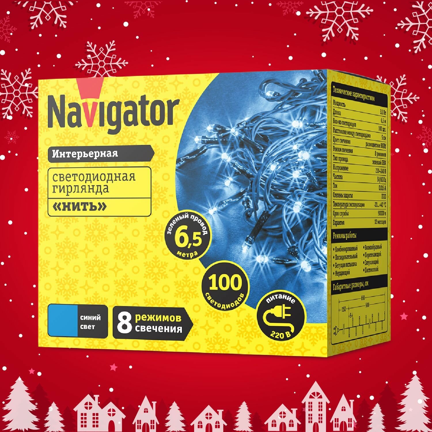 Гирлянда светодиодная Нить Navigator 61 821, 11.5 м, синий свет, зеленый провод, IP20
