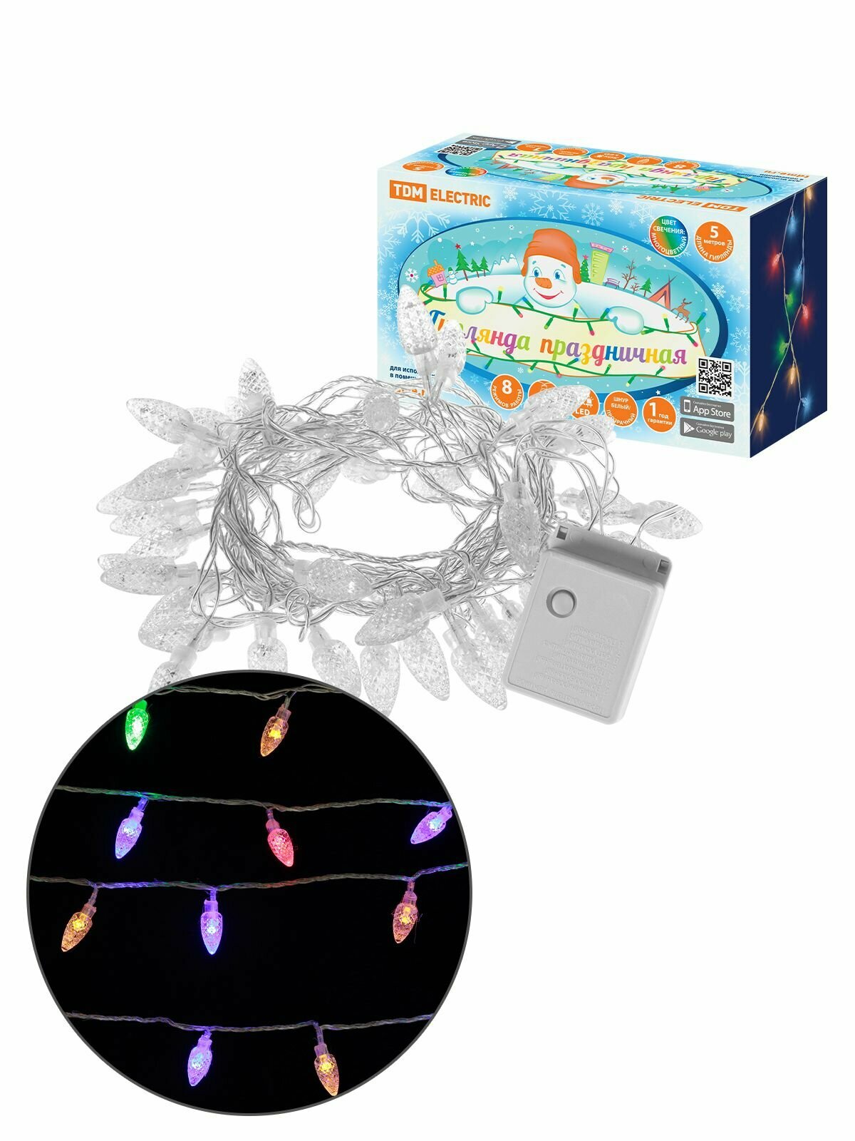 Светодиодная гирлянда Tdm Electric светодиодная "Шишки" 50LED, 5м, 8 режимов, многоцвет., прозр. шнур, 250 В, SQ0361-0050