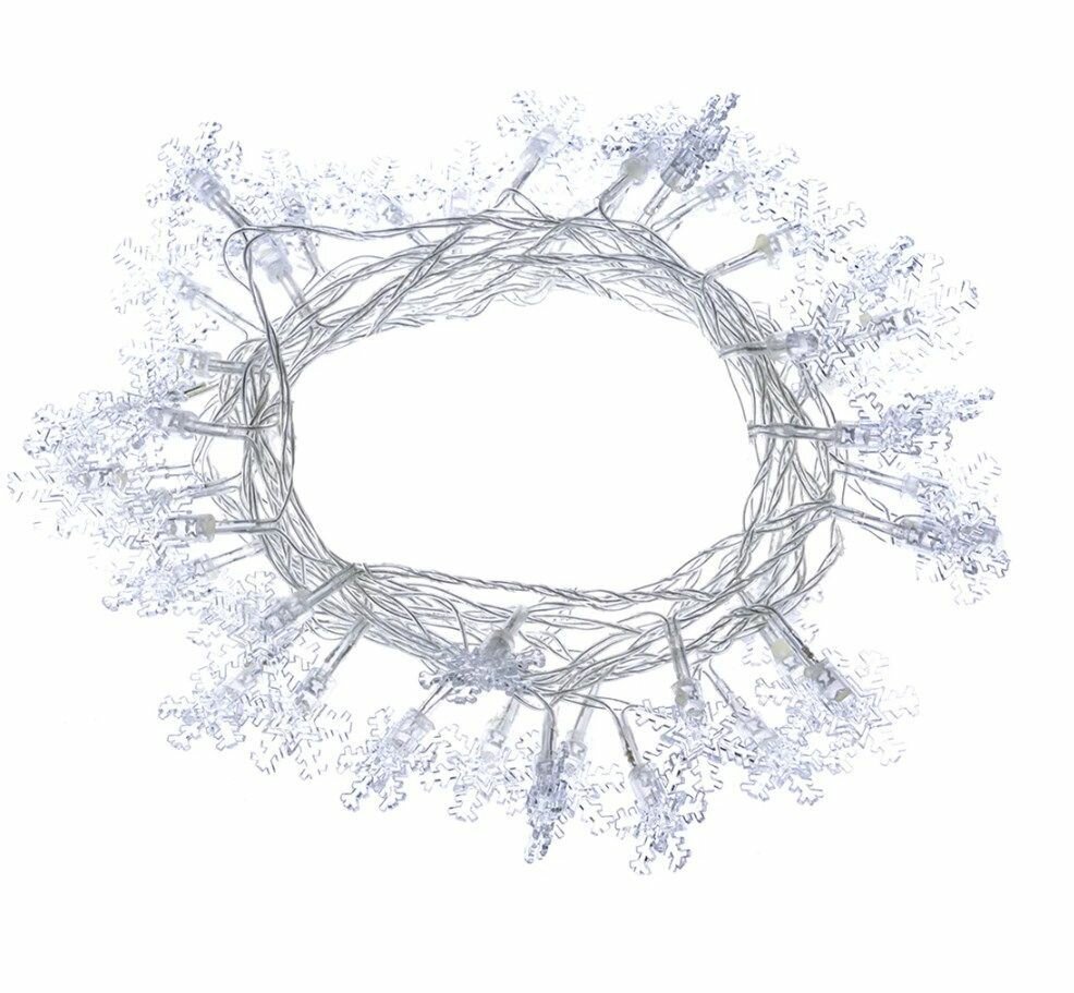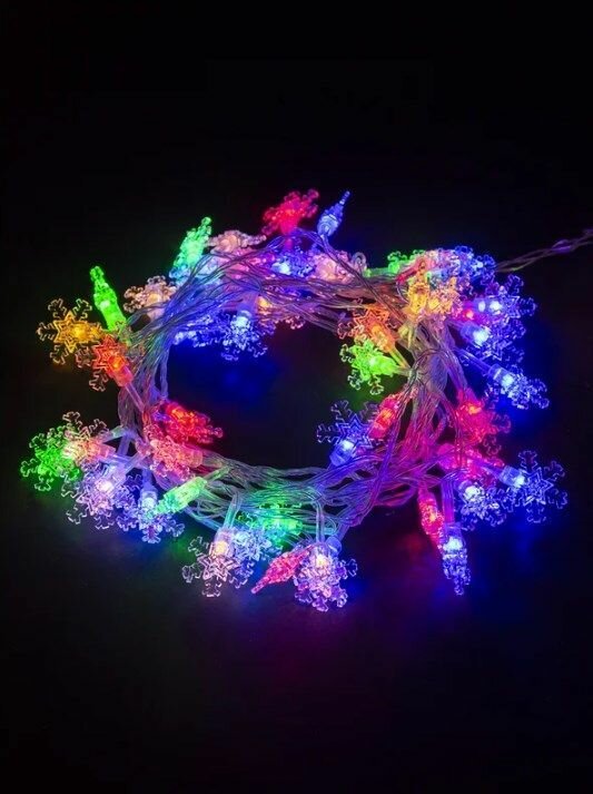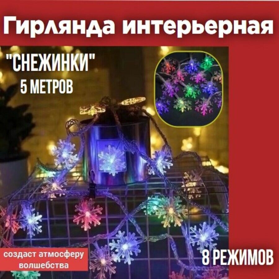 Купить Гирлянда светодиодная "Снежинки" 50LED, 5м, 8 режимов, многоцвет., прозр. шнур, 250 В