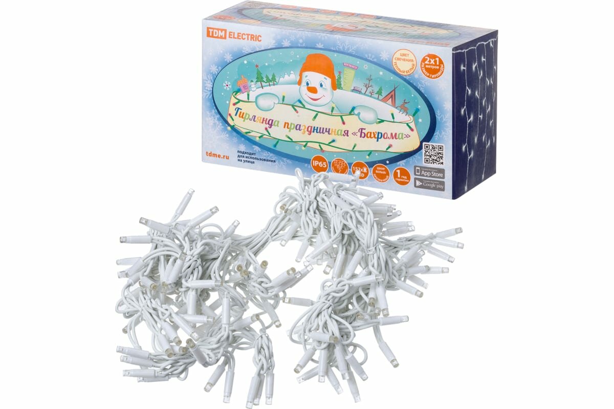 Купить Гирлянда светодиодная "Бахрома" 2х1м, 152LED, 3000К, бел. шнур, посл. подкл, IP65, 250 В, TDM