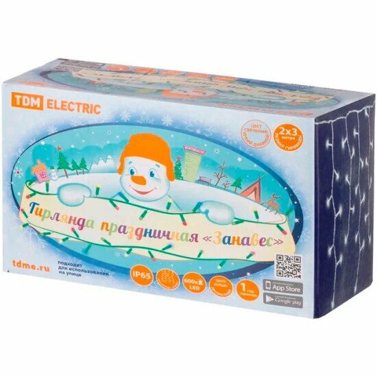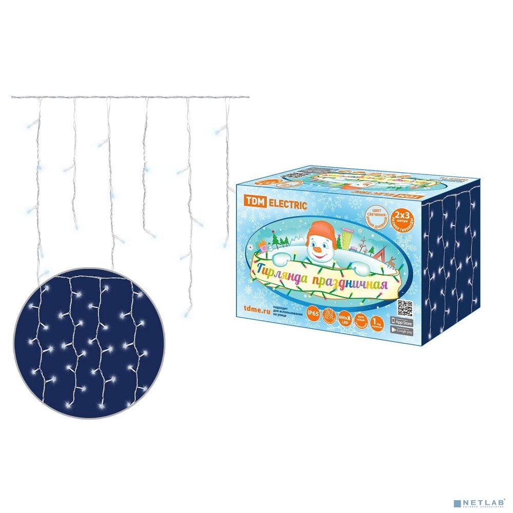 Светодиодная гирлянда Tdm Electric светодиодная "Занавес" 2х3м, 600LED, 6500К, бел. шнур, посл. подкл, IP65, 250 В, SQ0361-0045