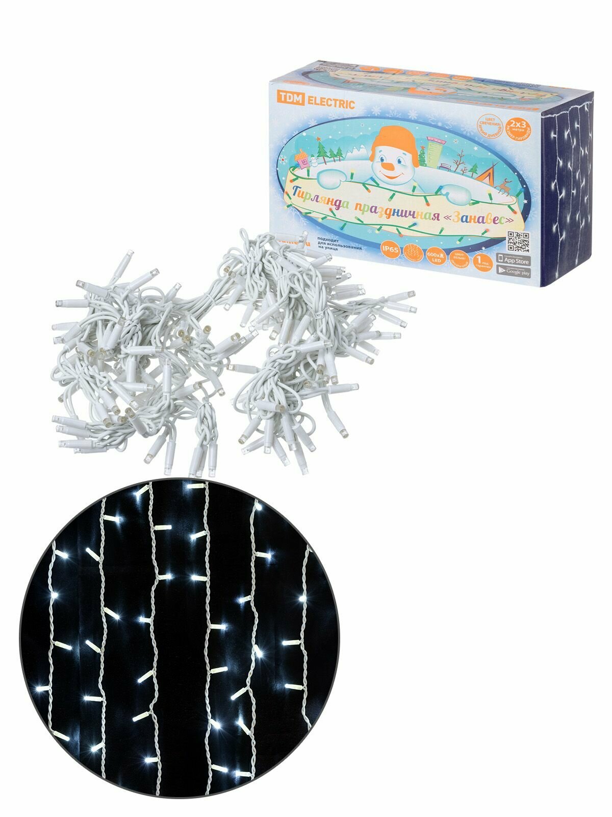 Купить Гирлянда светодиодная "Занавес" 2х3м, 600LED, 6500К, бел. шнур, посл. подкл, IP65, 250 В, TDM