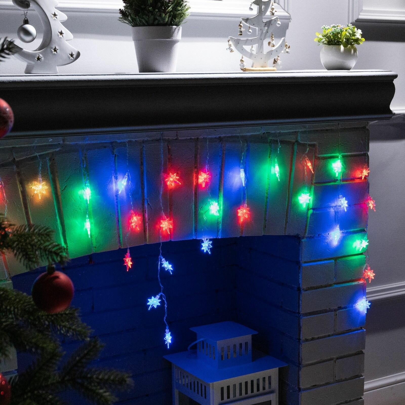 Купить Светодиодная гирлянда-штора "Бахрома" с насадками "Звёзды", новогодняя электрогирлянда на окно с мульти свечением (RG/RB), IP20, прозрачная нить с режимом мигания, 48 LED, 220 В, 1.8 х 0.5 м
