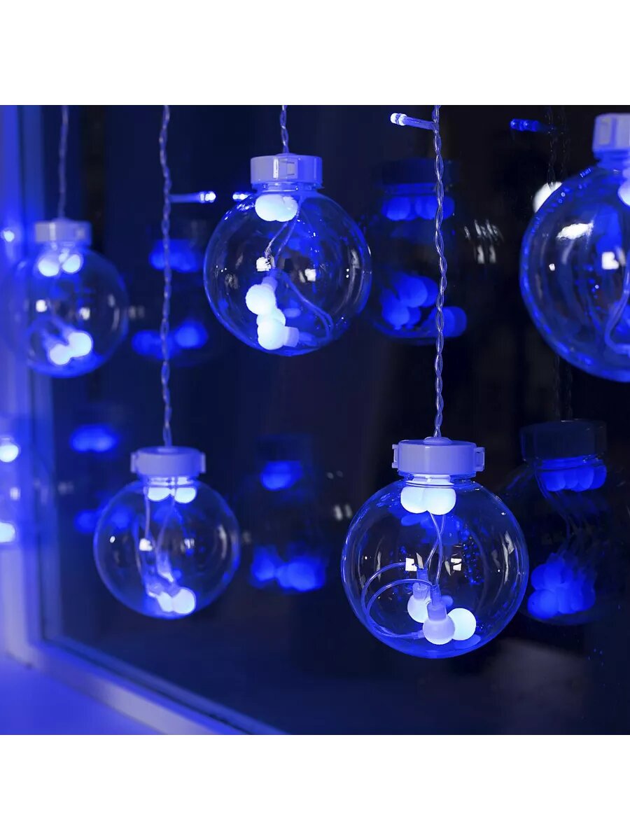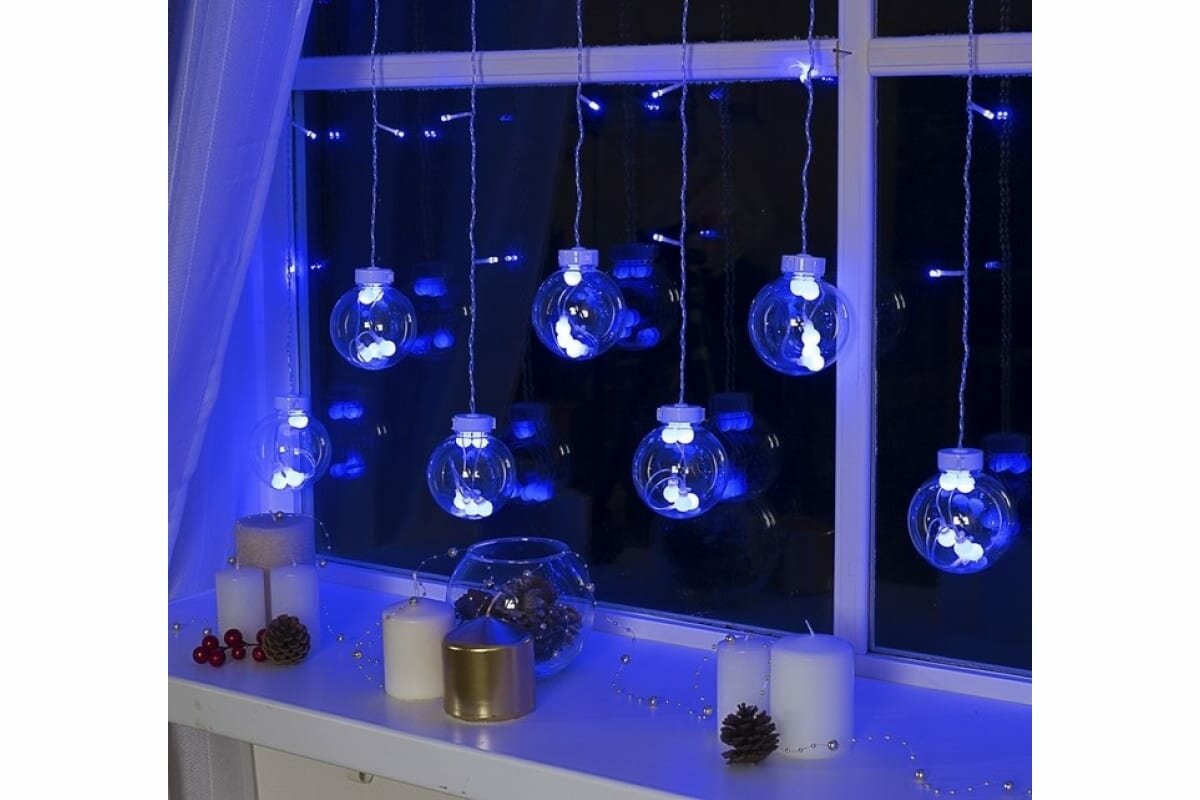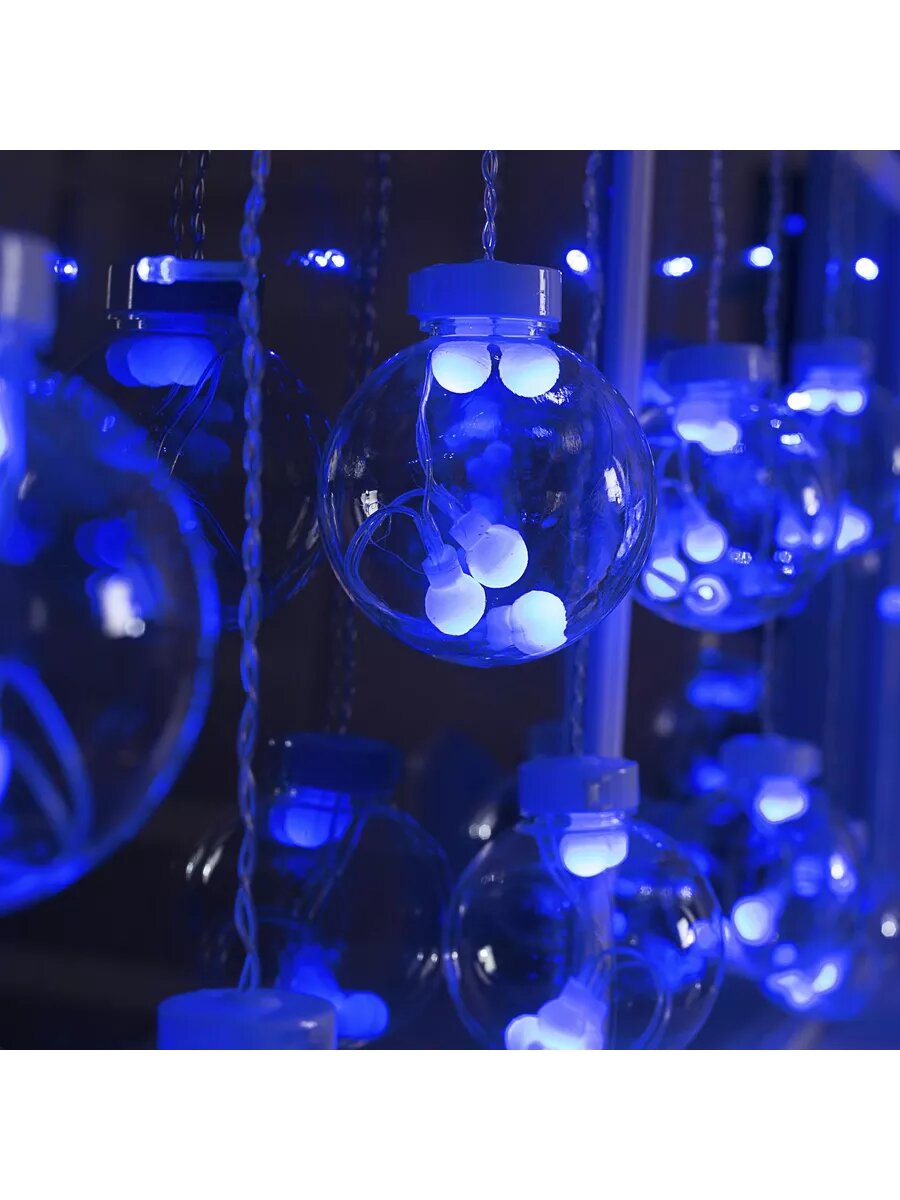 Купить Бахрома DECOR. "Шарики", IP20, Ш:2.4 м, В:0.7 м, Н.С. LED-108-220V, 8 режимов, синий