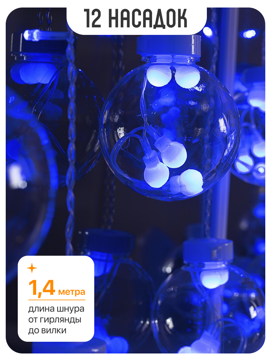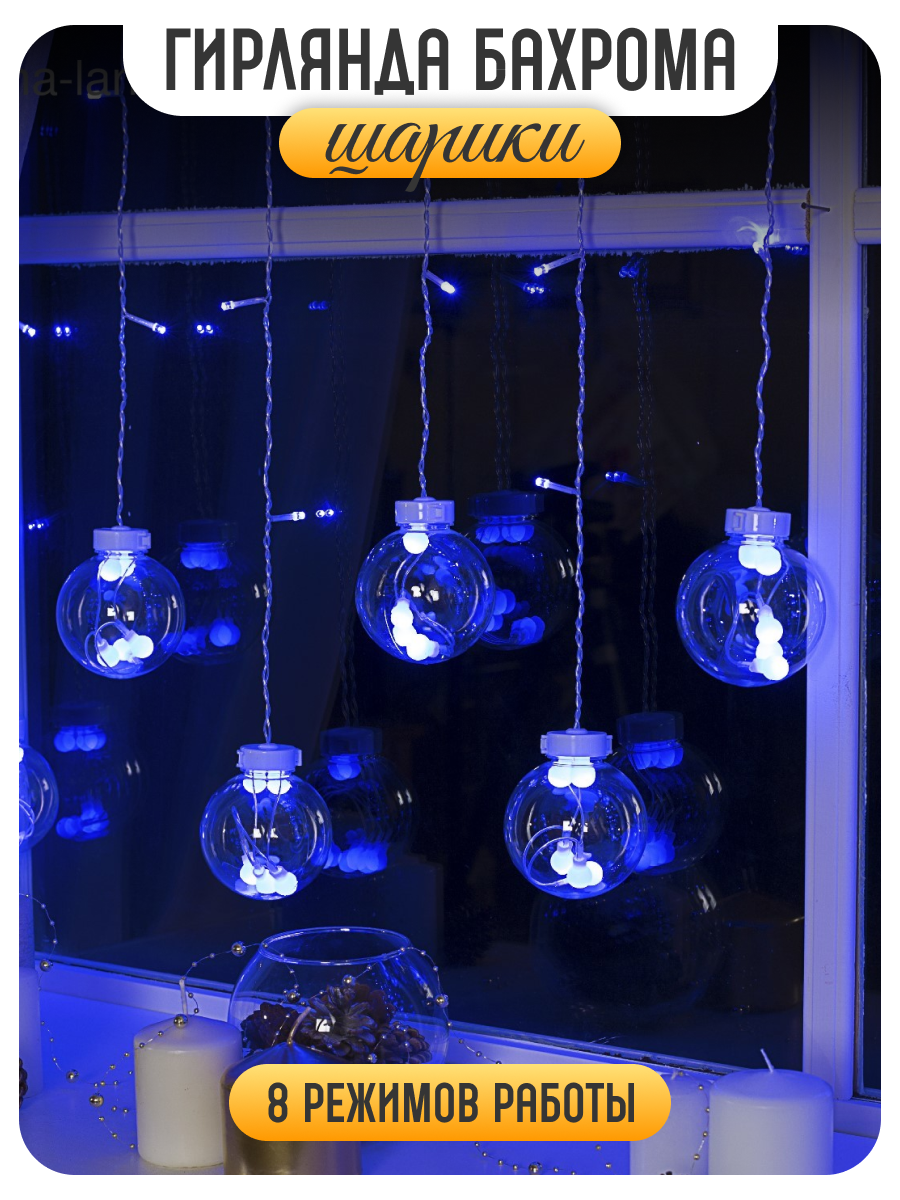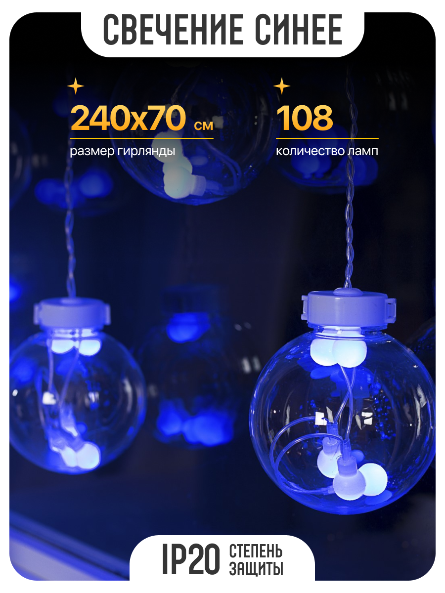 Купить Бахрома DECOR. "Шарики", IP20, Ш:2.4 м, В:0.7 м, Н.С. LED-108-220V, 8 режимов, синий