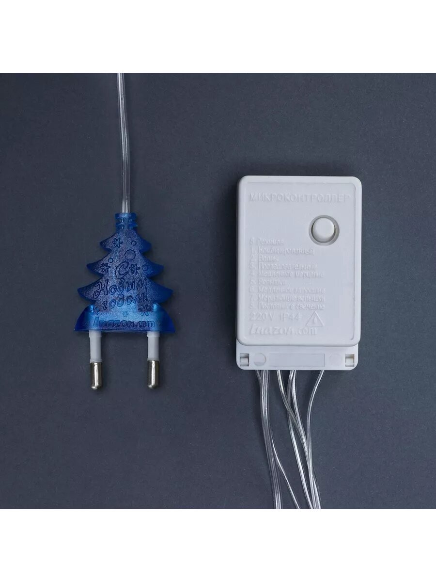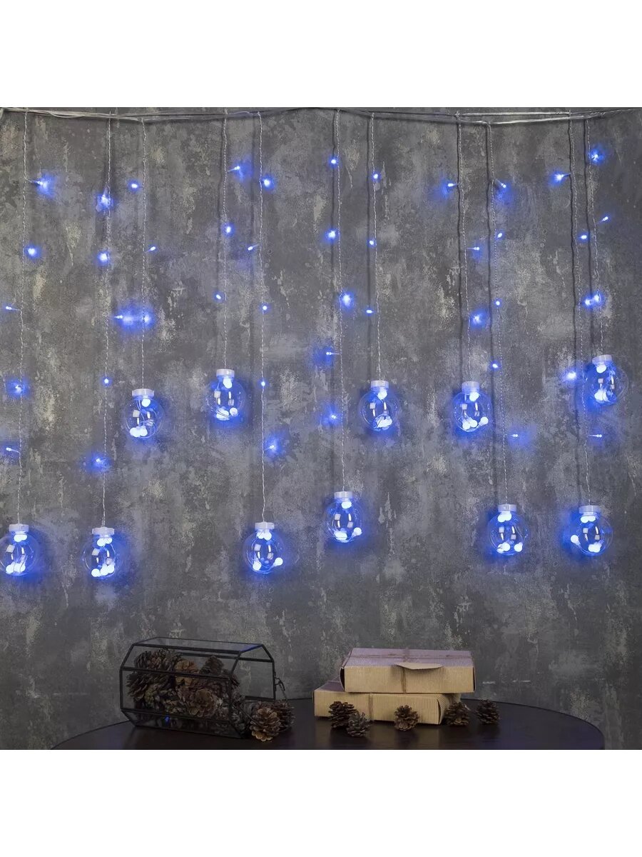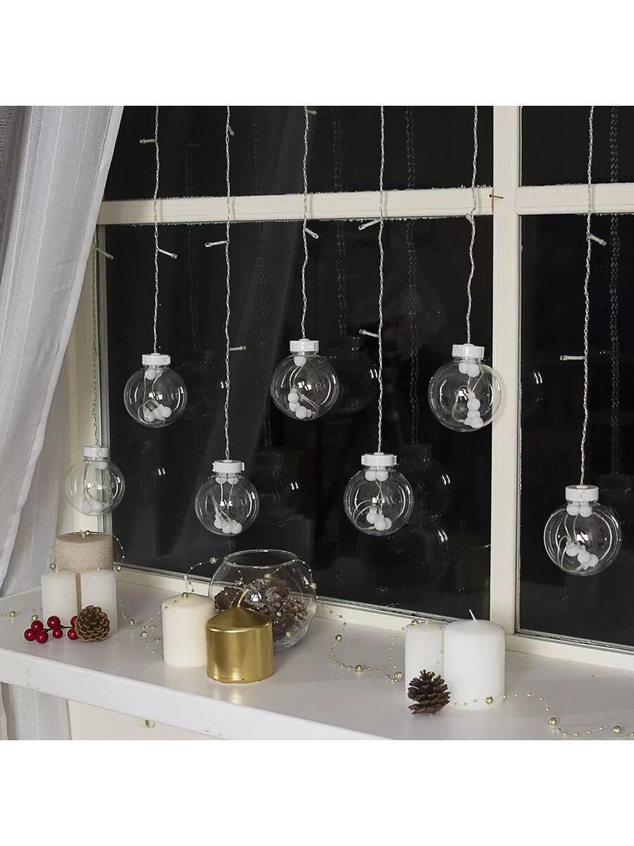 Гирлянда "Занавес" 2 x 1.5 м с насадками "Шарики", IP20, прозрачная нить, 360 LED, свечение тёплое белое, 8 режимов, 220 В
