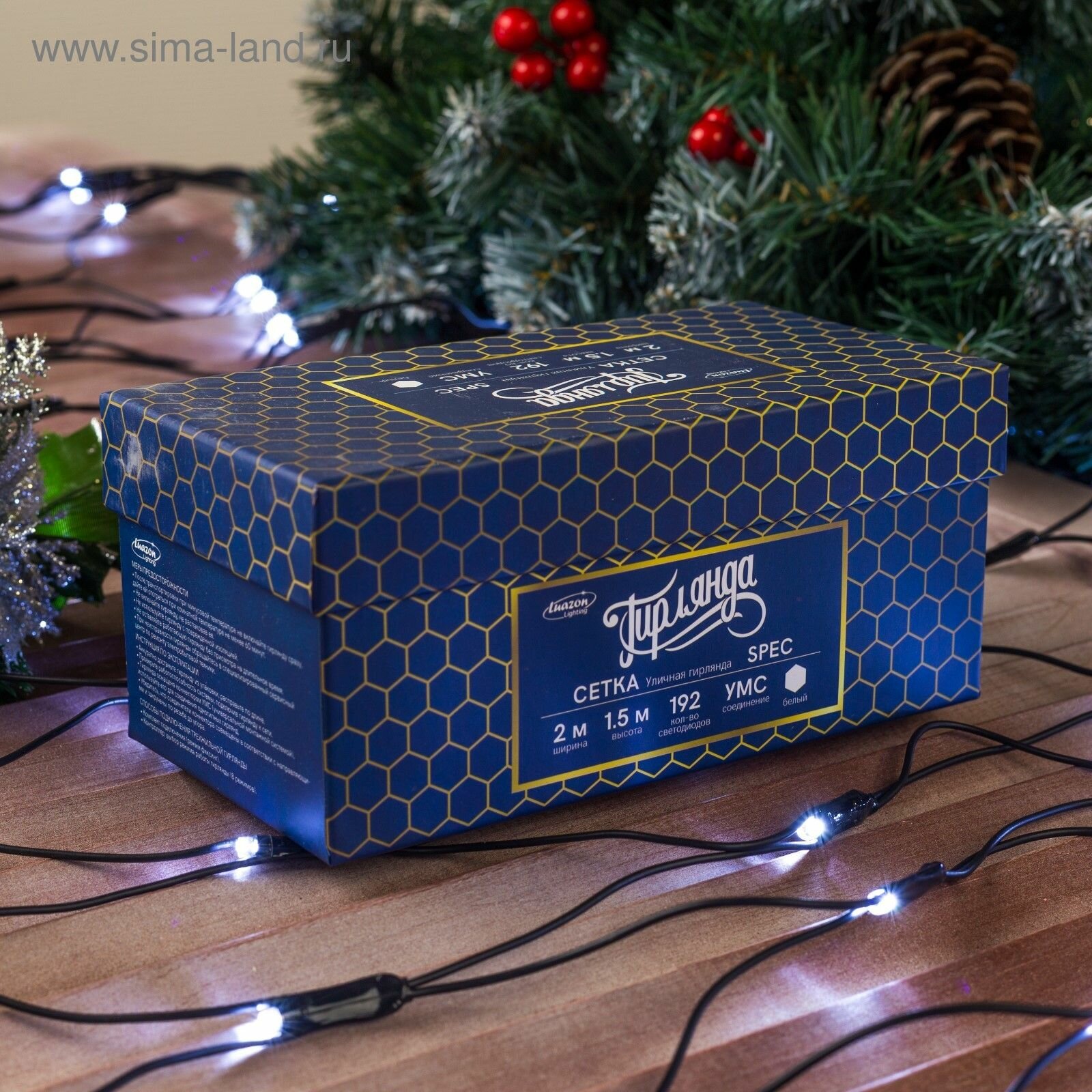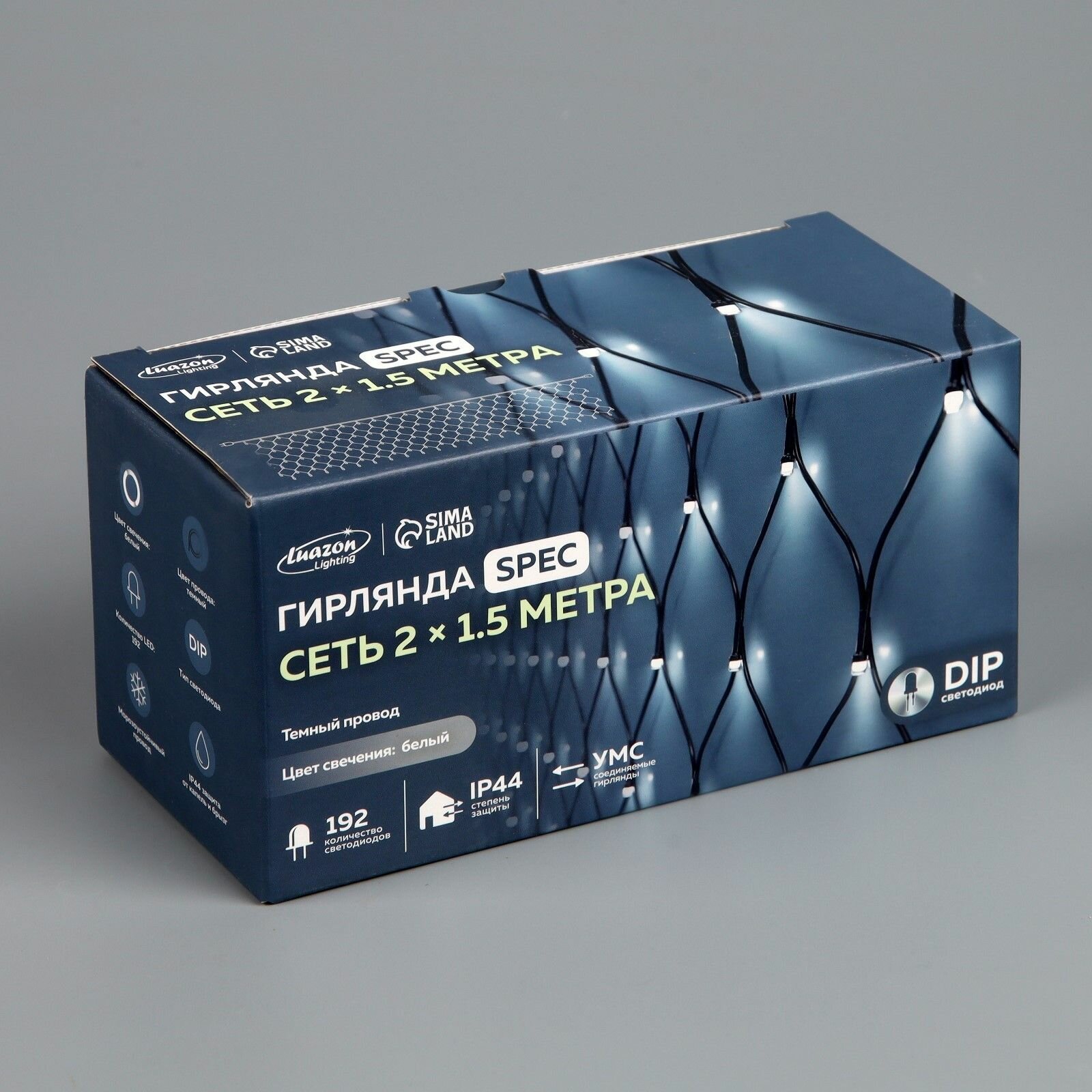 Купить Гирлянда уличная Luazon Lighting "Сеть" УМС 2х1, 5 м, 3W LED-192-220V, нить темная, свечение белое (3556881)