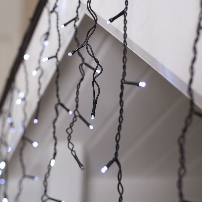 Гирлянда «Бахрома» 4 × 0.6 м, IP44, тёмная нить, 180 LED, свечение белое, мерцание белым, 220 В
