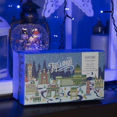 СохранитьГирлянда "Бахрома" 4 × 0.6 м, IP44, тёмная нить, 180 LED, свечение бело-синее, мигание, 220 В интересное: