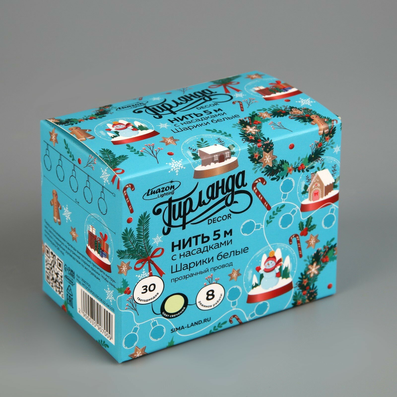 СохранитьГирлянда Luazon Lighting Нить, 5 м, "Шарики белые", 30 LED, свечение теплое белое, 8 режимов, 220 V (MT.DCR.IP20.220.06.22-04.1.03) интересное: