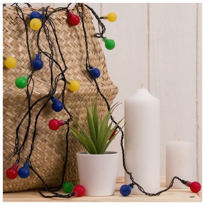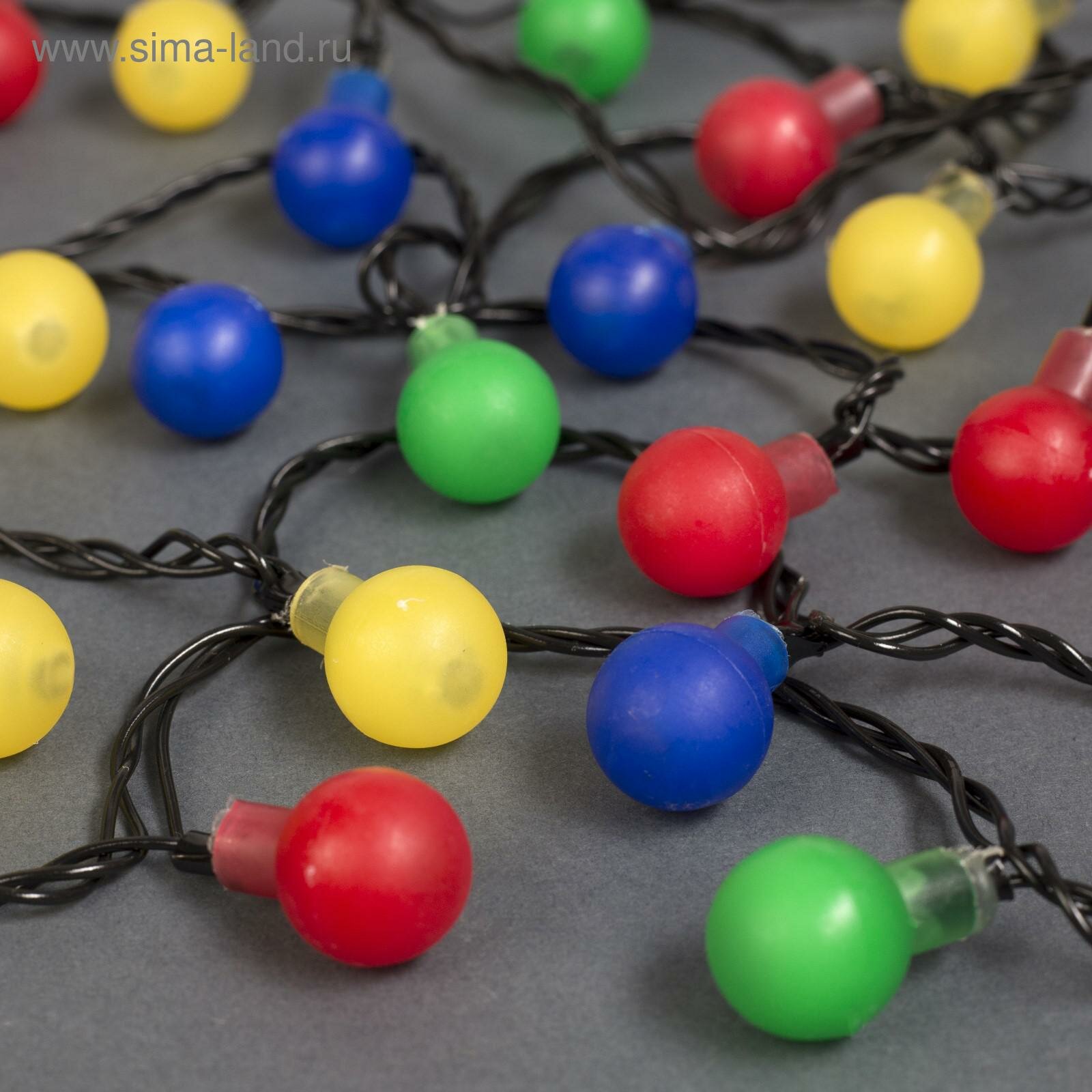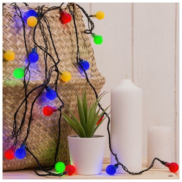 Купить Гирлянда "Нить / DCR" 5 м с насадками «Шарики цветные», IP20, тёмная нить, 30 LED, свечение мульти, 8 режимов, 220 В