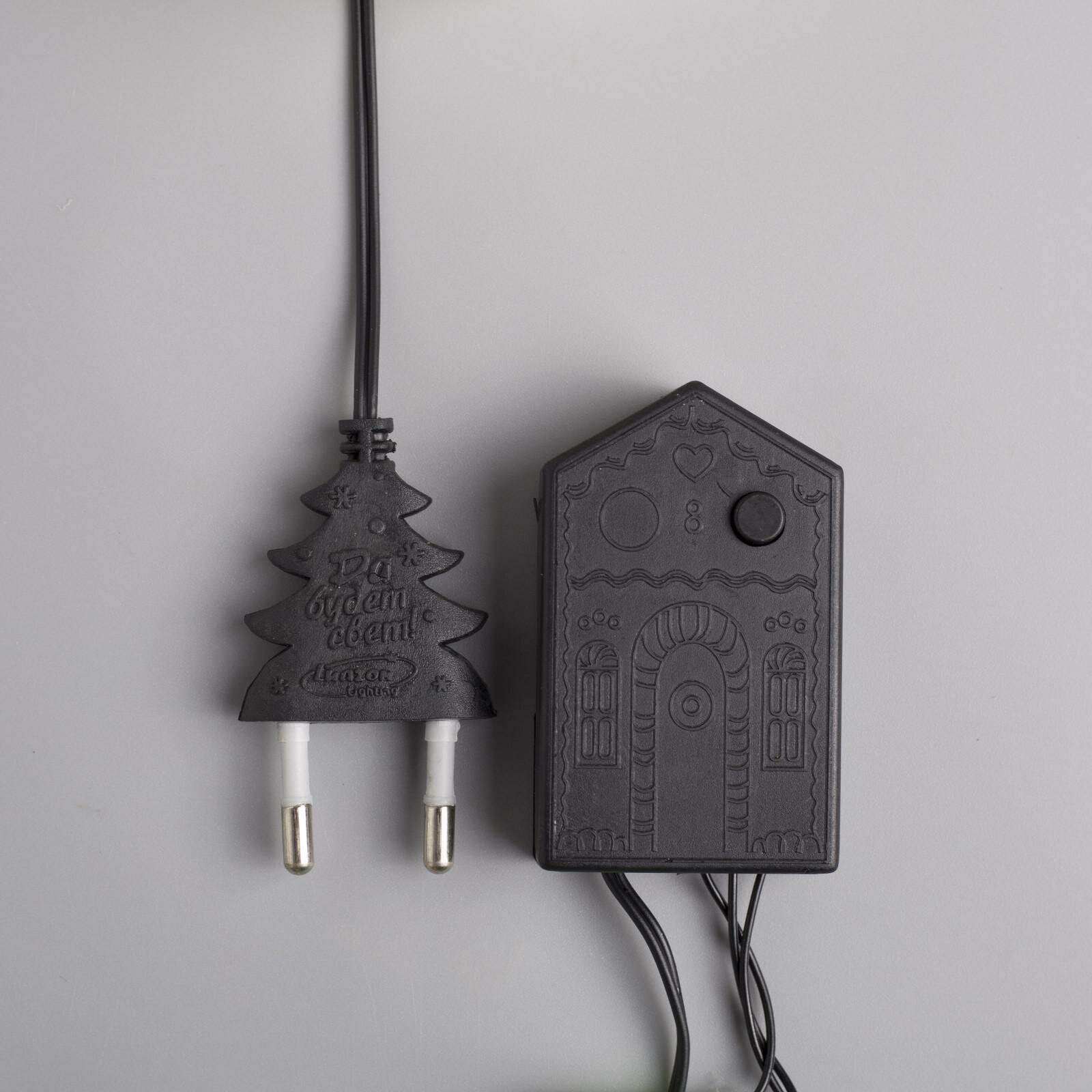 | Плюсы: | Выполнено качественно, выглядит симпатично, прозрачный провод не бросается в глаза. Несколько режимов мигания, как на большинстве елочных гирлянд. |