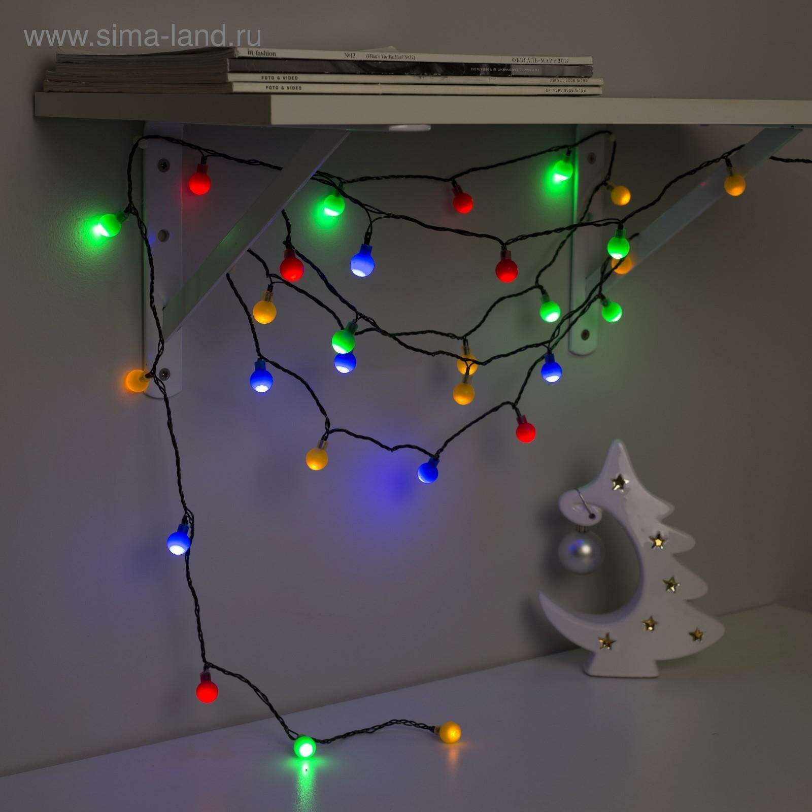 СохранитьГирлянда "Нить / DCR" 5 м с насадками «Шарики цветные», IP20, тёмная нить, 30 LED, свечение мульти, 8 режимов, 220 В интересное: