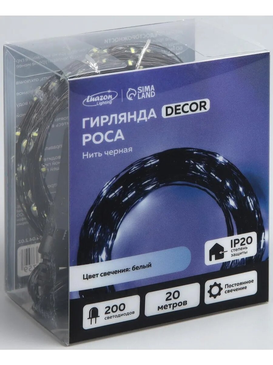 СохранитьГирлянда «Нить» 20 м роса, IP20, чёрная нить, 200 LED, свечение белое, 12 В интересное: