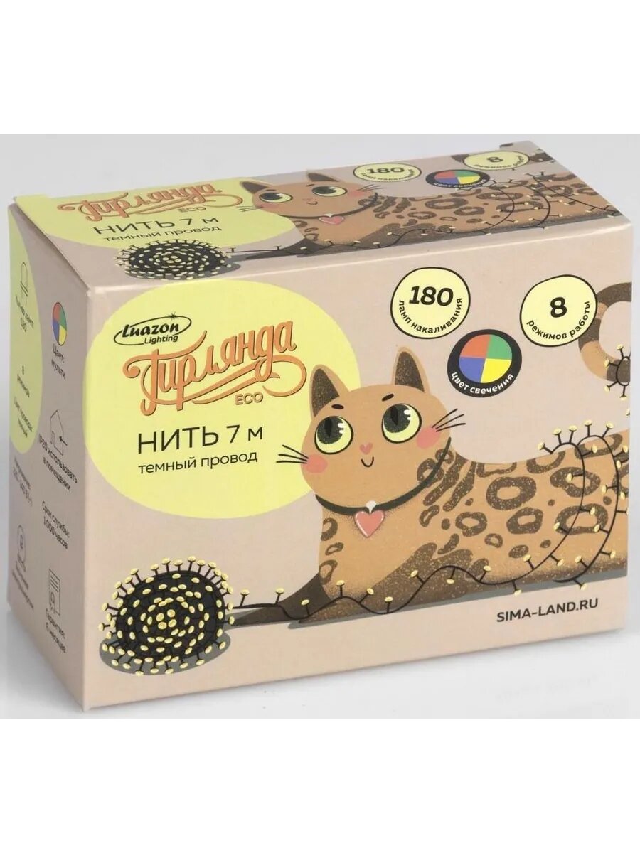 СохранитьГирлянда «Нить» 7 м, IP20, тёмная нить, 180 ламп, свечение мульти, 8 режимов, 220 В интересное: