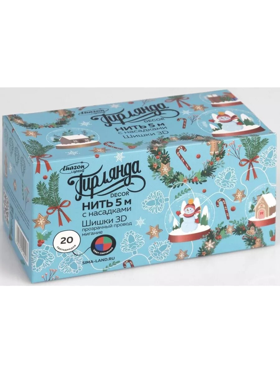 Купить Гирлянда "Нить" 5 м с насадками "Шишки сосновые", IP20, прозрачная нить, 20 LED, свечение мульти, мигание, 220 В