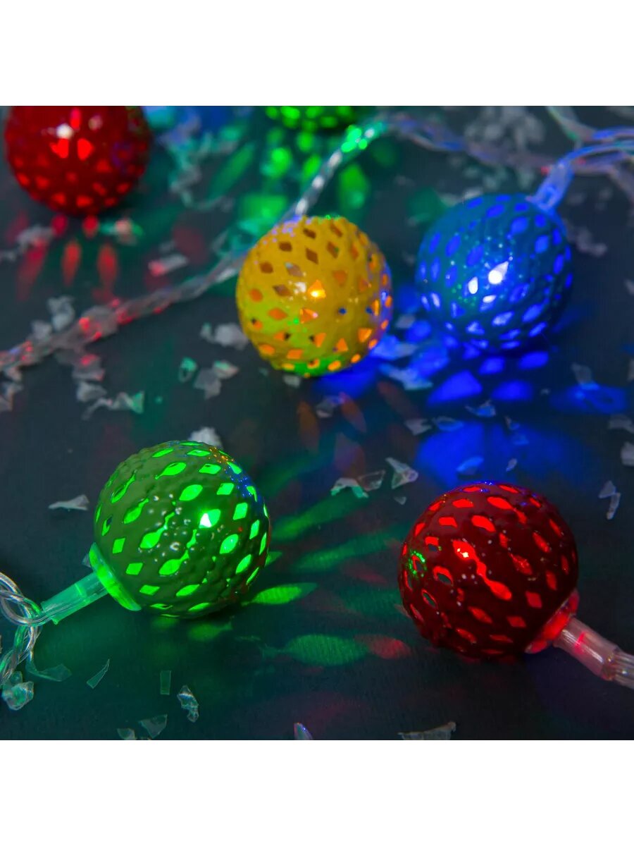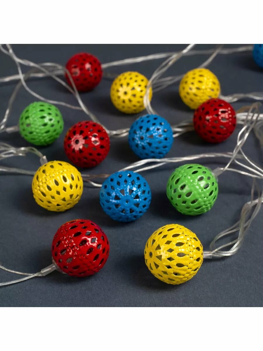 Купить Гирлянда "Нить" 4 м с насадками "Шарик с узором", IP20, прозрачная нить, 20 LED, свечение мульти, 8 .