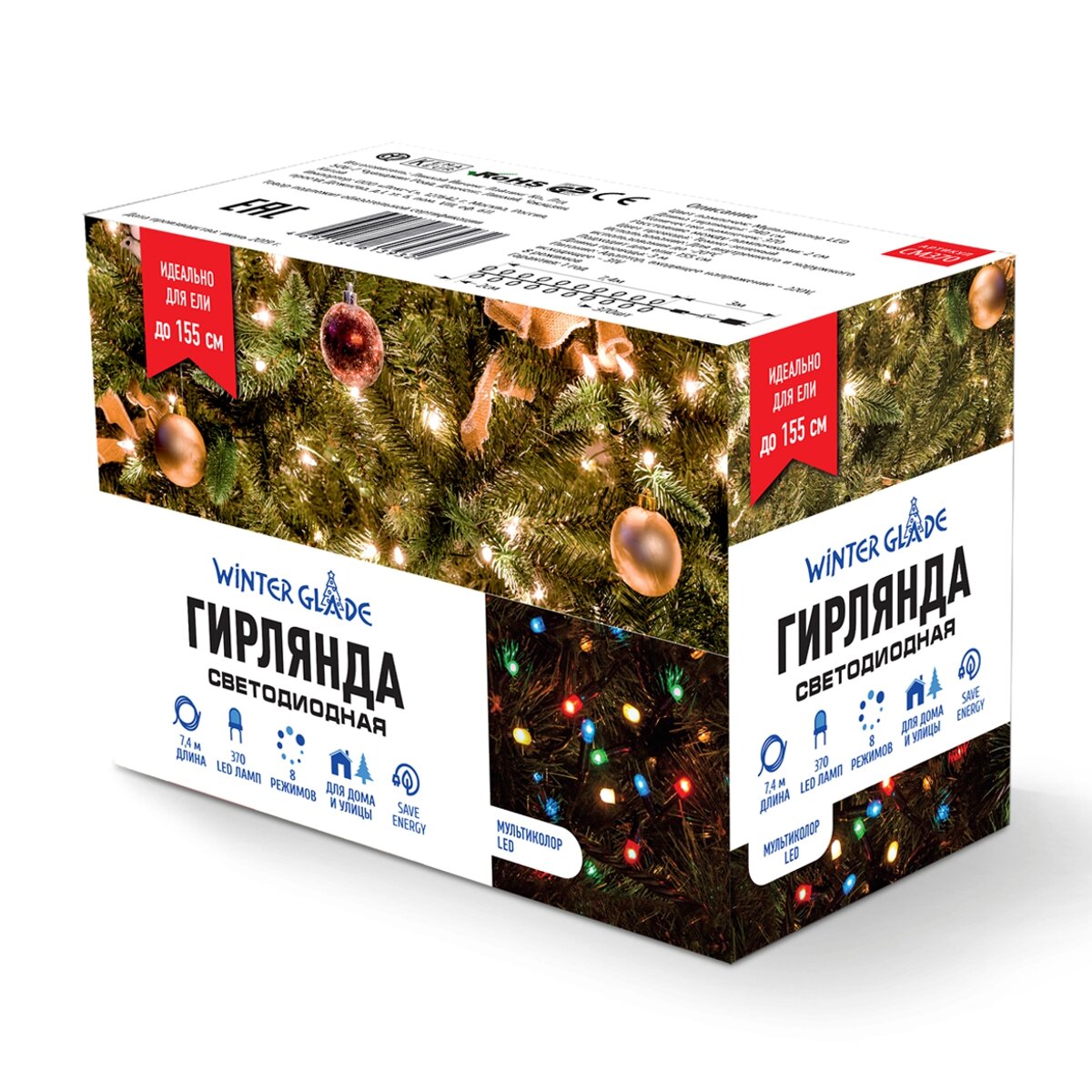 Ёлочная гирлянда Winter Glade Мультиколор 370 ламп (Длина гирлянды: 740 см. Для елки до 155 см. 8 ре