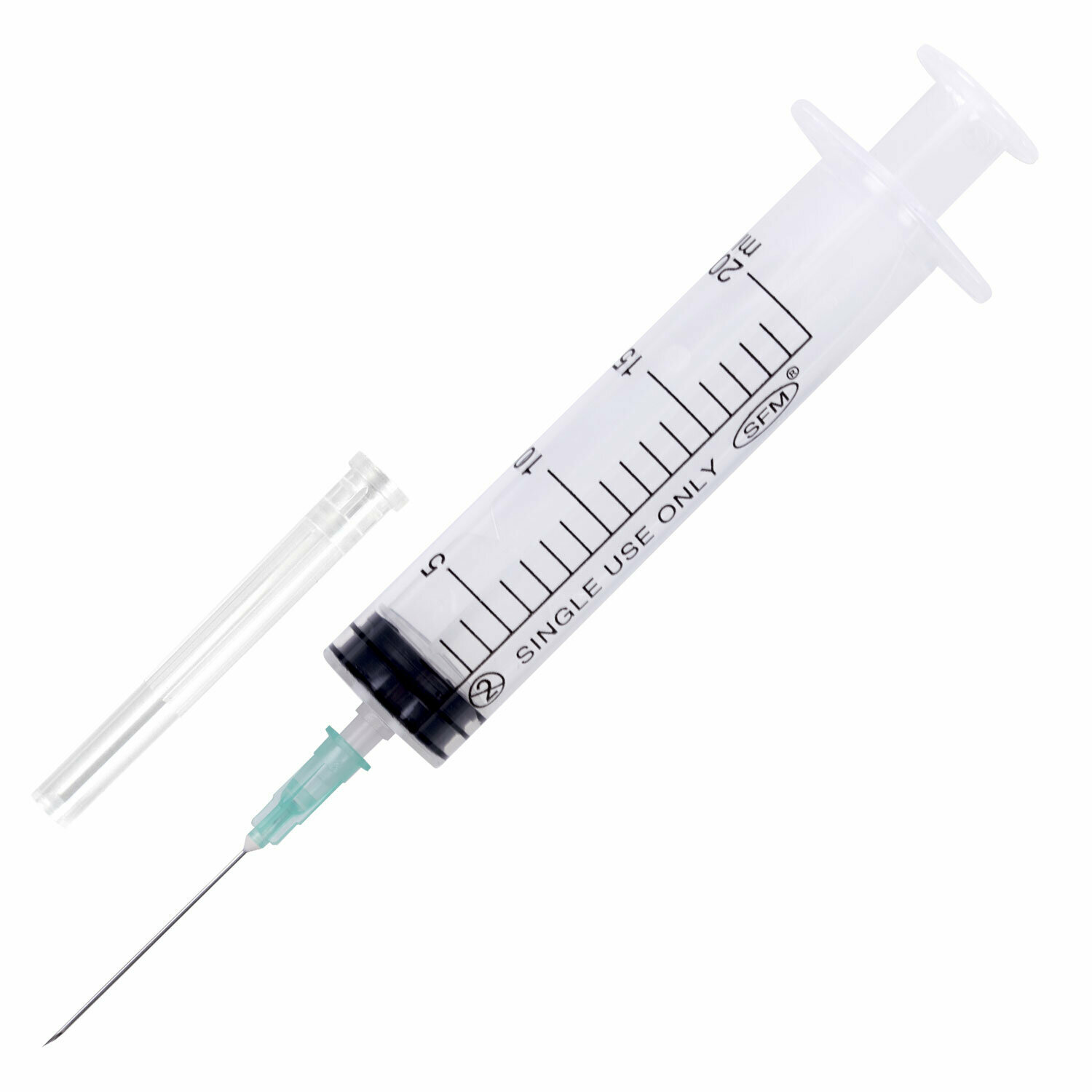 SFM Шприц трехкомпонентный одноразовый медицинский 20 мл, для инъекций и уколов, LUER-LOCK с иглой 0,80 х 40 - 21G, 50 шт
