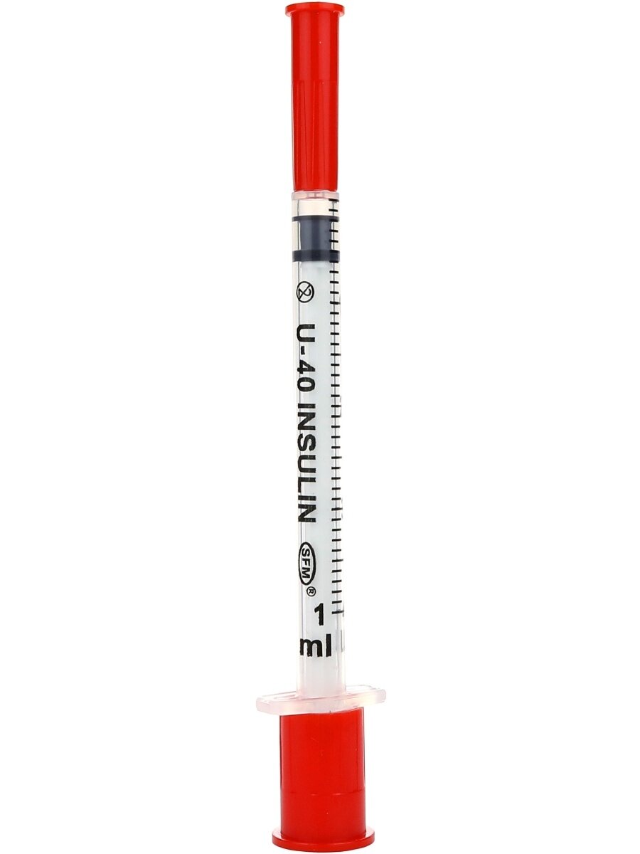 Шприц одноразовый инсулиновый U-40 SFM с иглой (1 мл, 29G (0,33х12,7 мм), 100 шт, Интегрированная)