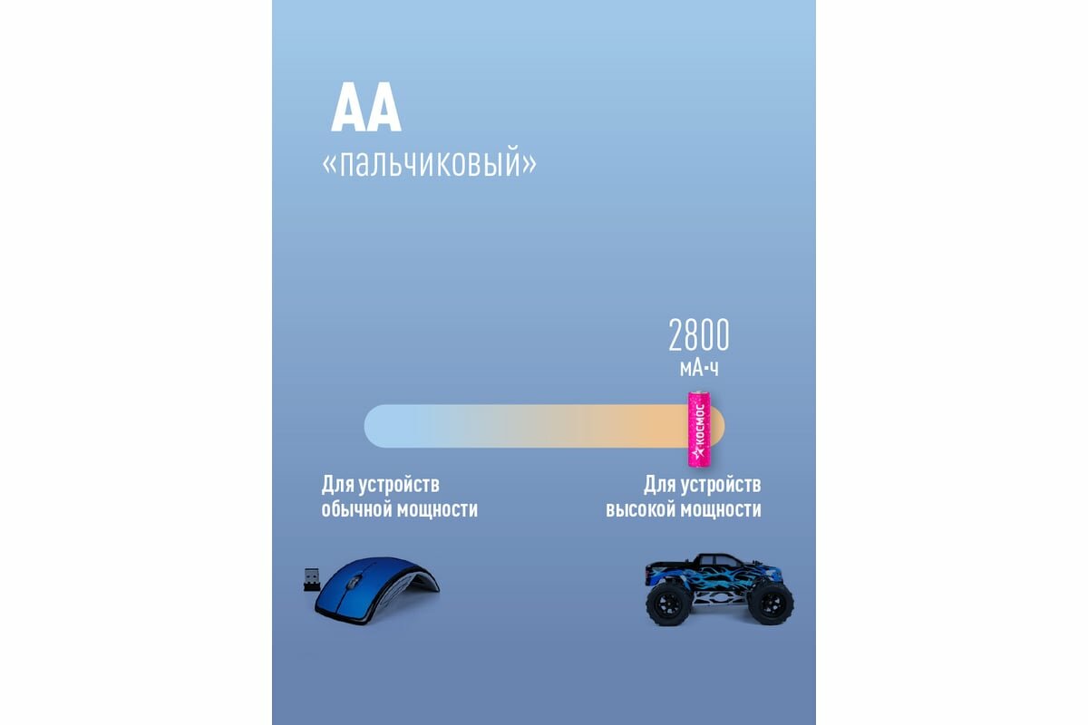Аккумулятор Космос AA, HR6 2800 mAh, NI-MH, 2 шт