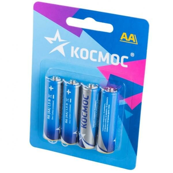 Купить Батарейки Космос, KOCR64BL, AA, R6, солевые, 1.5 v, 4 штуки